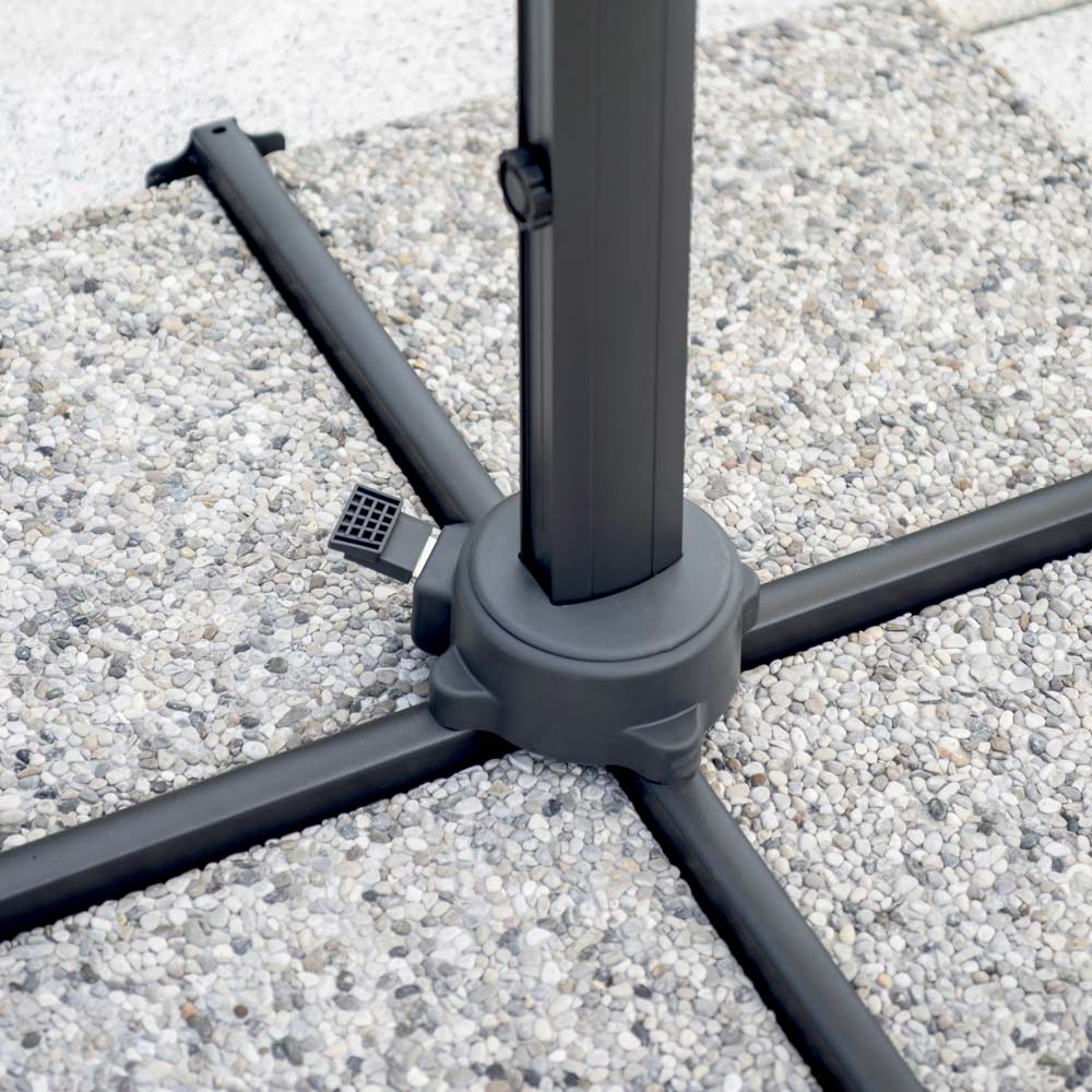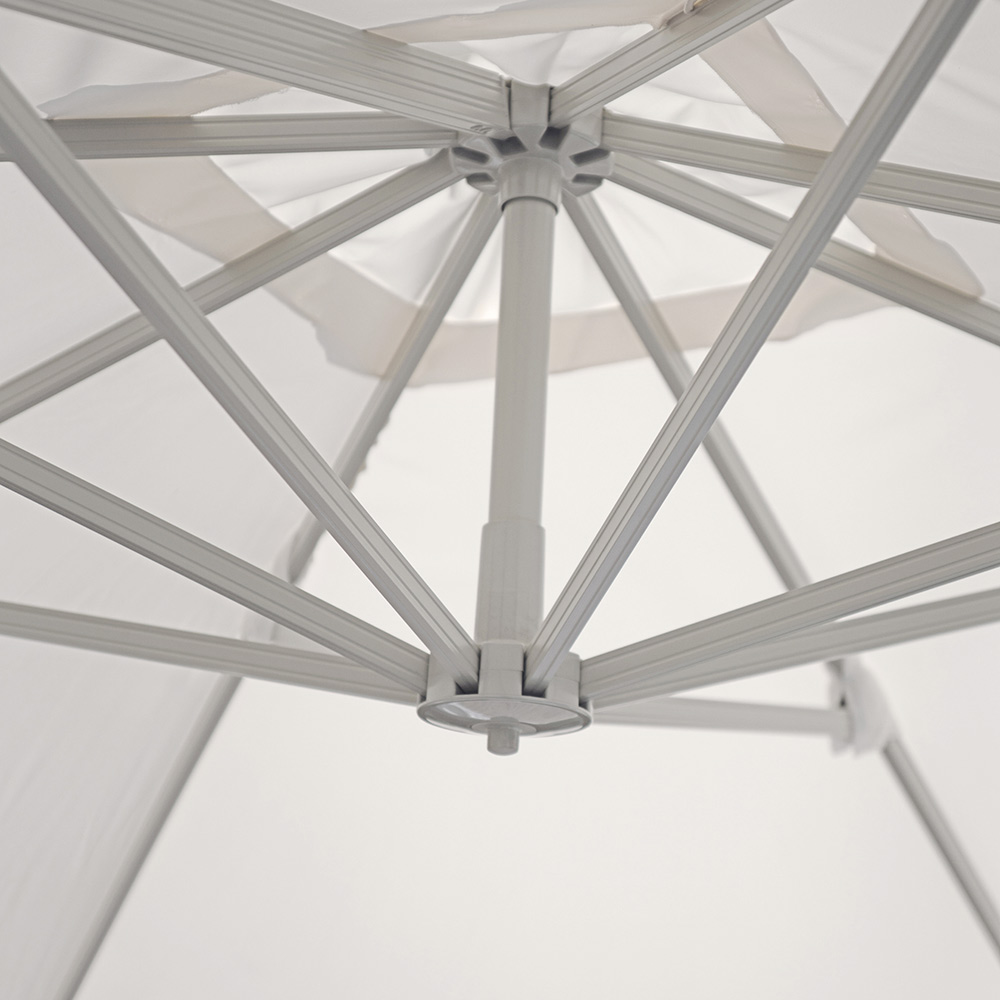 Equipado con un sistema a prueba de viento y una base metálica en forma de cruz , garantiza estabilidad incluso en los días más ventosos. Es perfecto para jardines, terrazas y zonas de piscina, así como para exteriores de restaurantes, hoteles y bares.