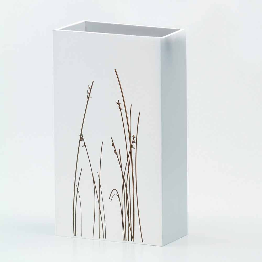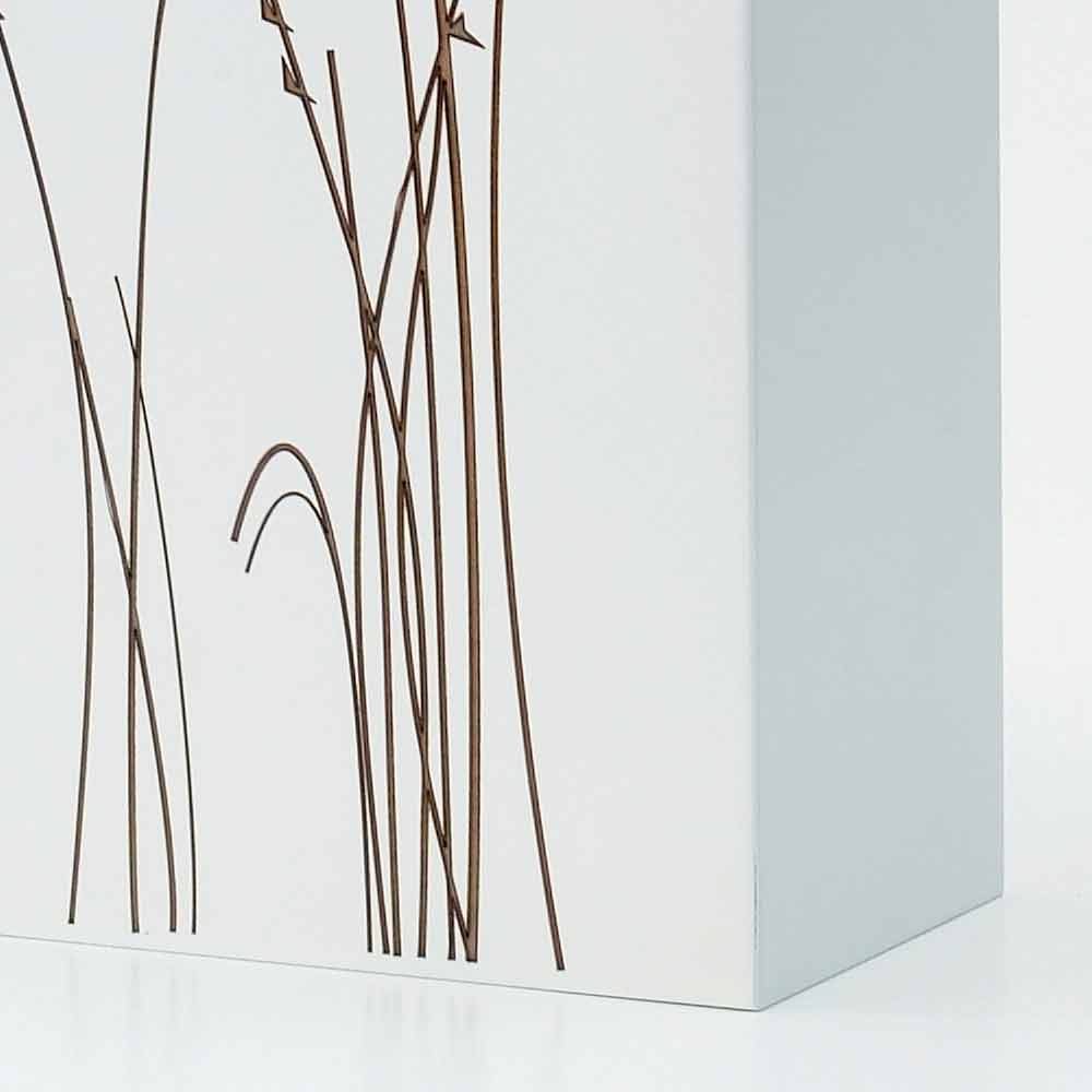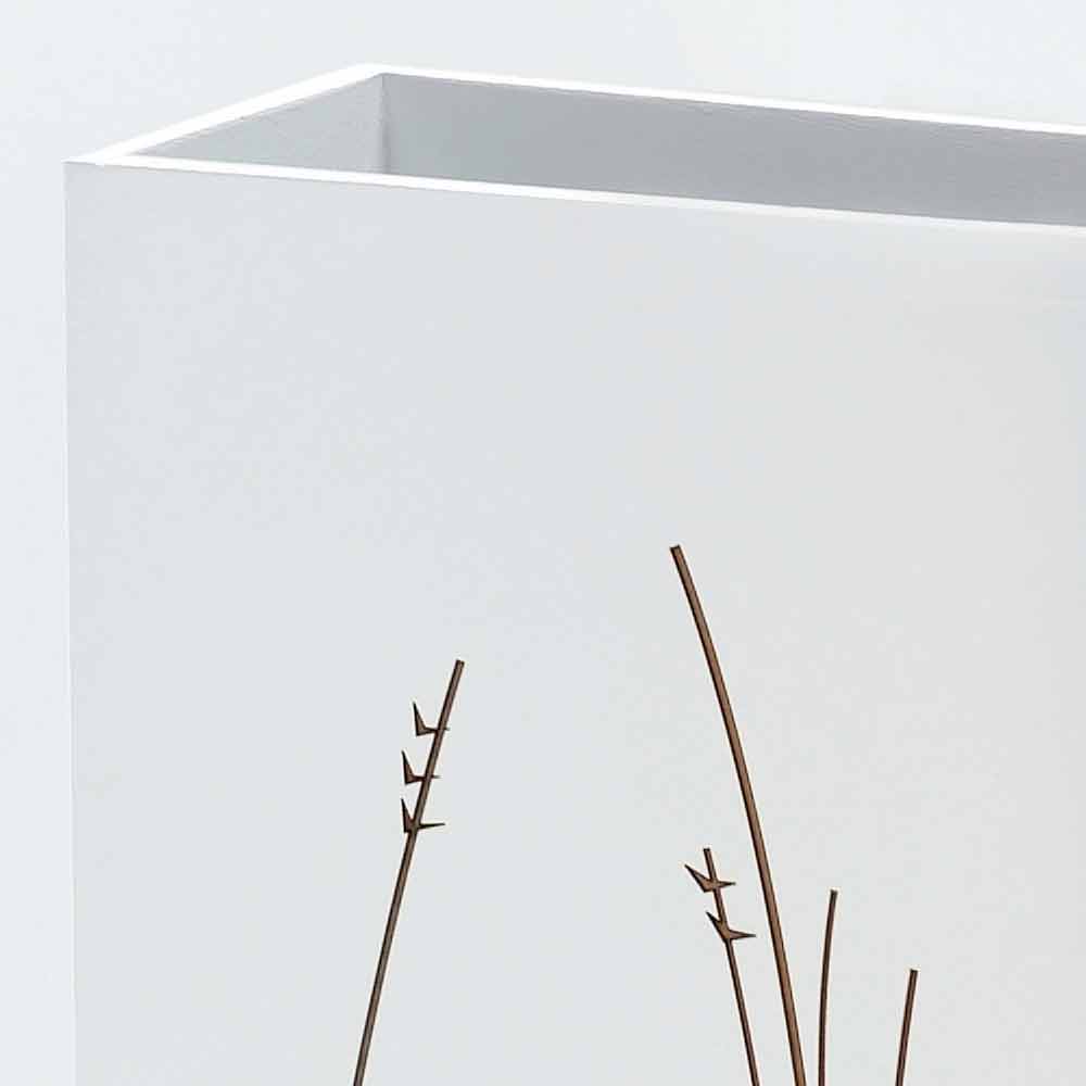 Paragüero rectangular moderno en madera blanca con patrones marcados con láser, diseño de pie hecho en Italia.