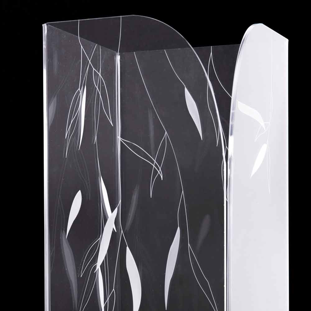 Paragüero en plástico transparente con hojas decorativas grabadas a láser, diseño Made in Italy.