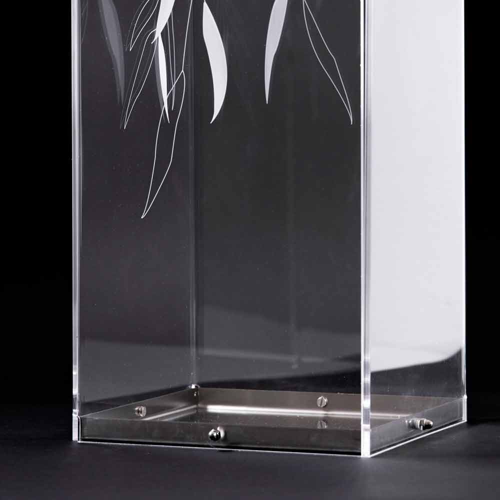 Paragüero de diseño en plexiglás transparente con hojas grabadas - Kanno