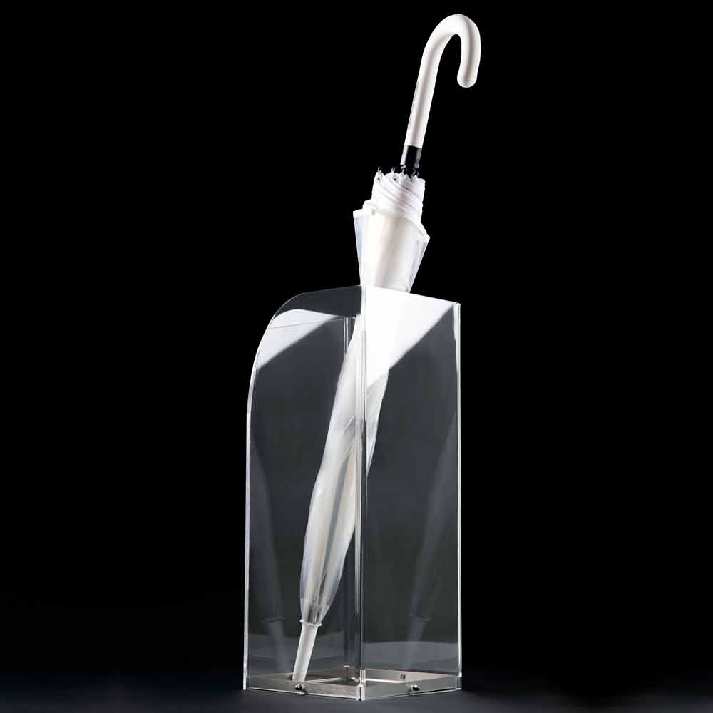 Paragüero en plexiglás transparente de diseño minimalista liso fabricado en Italia.