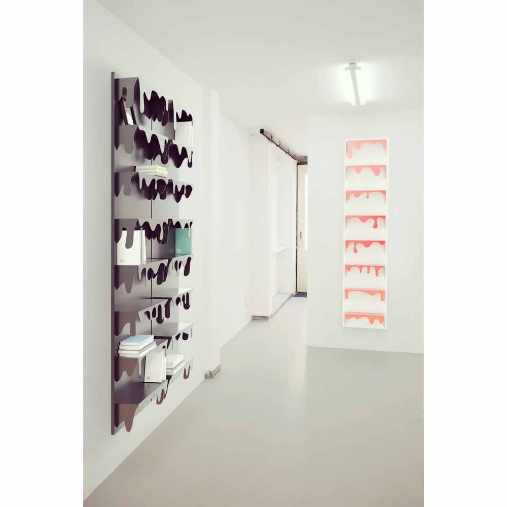Kolata es una plancha pintada pared de la biblioteca original, un complemento que proporciona entornos y al mismo tiempo es extremadamente funcional, gracias a la forma dinámica de los estantes que dan un aspecto a todo el pop.
