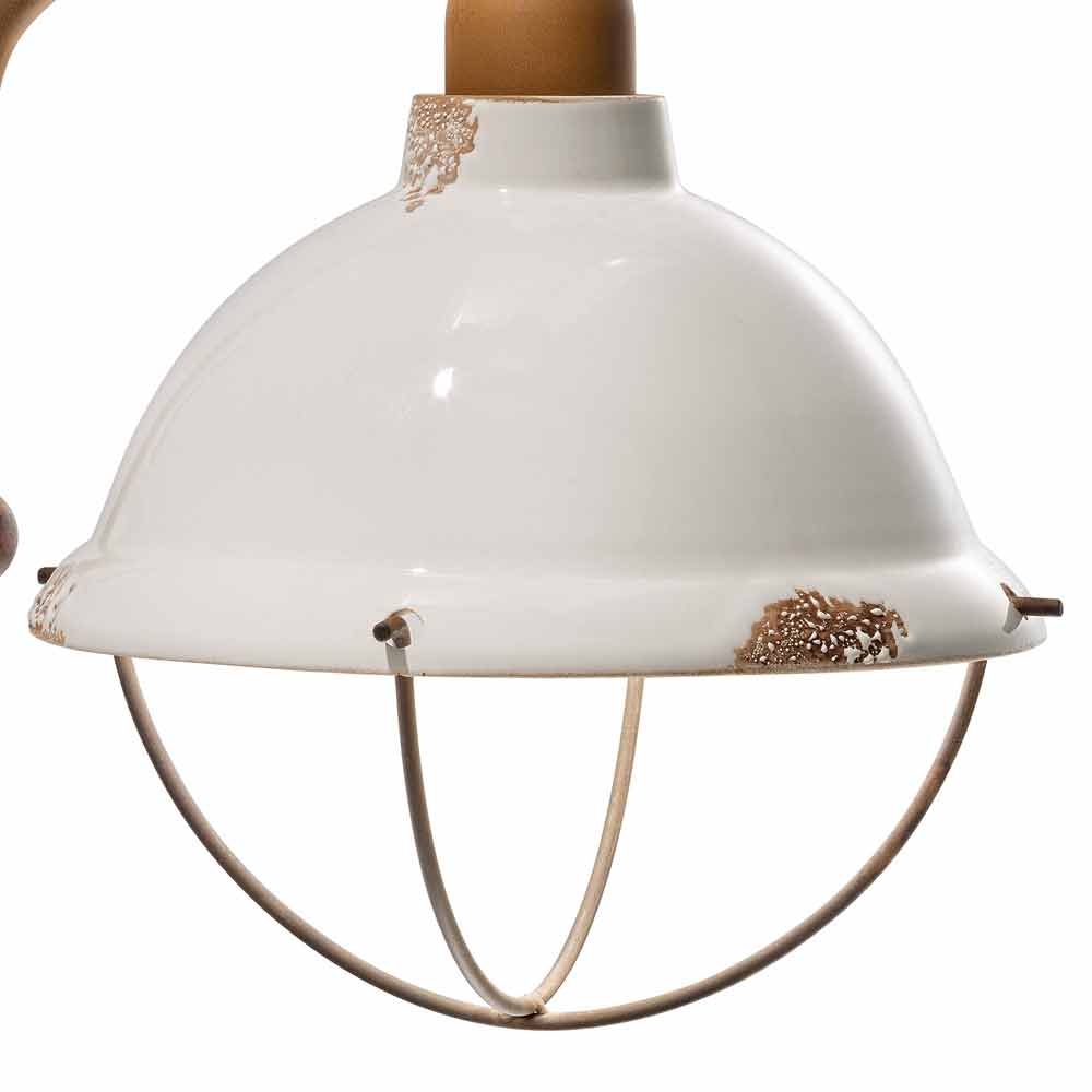 Aplique de pared de cerámica y metal de estilo industrial Skyler Skyler es una fantástica lámpara de pared, con forma de campana y estilo vintage - industrial, hecha a mano por expertos artesanos en Italia. Esta preciosa lámpara consta de una estructura de hierro con un difusor realizado en cerámica brillo, disponible en diferentes colores. La peculiaridad de esta lámpara radica en la elaboración artesanal del difusor cerámico. La cerámica, de hecho, está decorada como si el tiempo hubiera marcado su camino. La reproducción de la erosión del tiempo combinada con las superficies brillantes le dan ese valor extra a este aplique. Este efecto desgastado le da a Skyler un sofisticado estilo industrial vintage. La estructura de metal amplifica aún más el efecto antiguo. Colores vivos, superficies brillantes y refinados signos de la edad para un perfil actual disfrazado de estilo pasado. Este precioso aplique de pared está inspirado en los puntos de luz que se utilizan para iluminar las bodegas de los barcos mercantes. Como la mayoría de los objetos náuticos que naturalmente se desgastan, esta lámpara también muestra los signos del tiempo. Ideal para decorar una casa de campo de estilo inglés. Este aplique creado para ambientes con un ambiente envolvente, es capaz de satisfacer las peticiones más exigentes gracias a un diseño único y original. Un diseño que se opone al lujo pero que convive armónicamente con él. Diseño que preserva la esencialidad del uso y tranquiliza con un delicado equilibrio entre formas y tonos. Skyler crea luz pura, sin pantallas. Son estas formas simples y delicadas las que llaman la atención, y que hacen que Skyler sea capaz de adaptarse a cualquier decoración, desde la más sencilla y minimalista hasta la más clásica, creando un delicado contraste. ¡Dale un toque de diseño también a tu hogar! ¡Pequeños detalles para un gran efecto con sabor antiguo! Lámpara disponible en diferentes acabados. ¡Consulta la carta de colores e introduce el código del acabado que deseas en la casilla correspondiente!