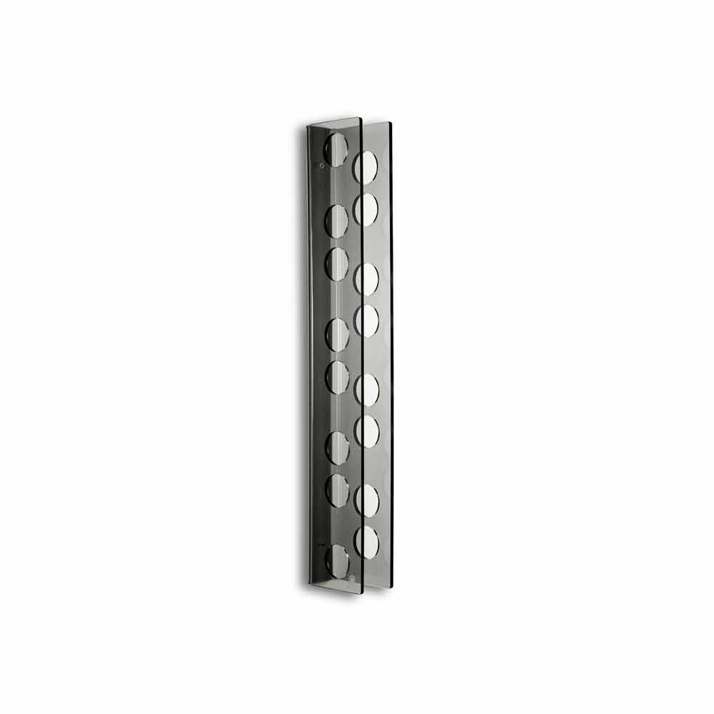 Pequeño titular de lámpara de pared ahumado L6xH60xP11cm, diseño moderno Mueble de pared en plexiglás PMMA 100% polímero virgen, que le permite almacenar 8 botellas. Posibilidad de componer estructuras modulares para organizar mejor las botellas más preciadas. El plexiglás es a prueba de golpes, indeformable, inalterable y aislante del calor. El brillo y el brillo se mantienen constantes y sin cambios a lo largo del tiempo. El plexiglás de PMMA de polímero virgen utilizado por es no tóxico, hipoalergénico, inodoro y antibacteriano. 100% reciclable Cumple con UNI EN 71-3: 200. Diseñado, diseñado y fabricado en Italia, con materiales italianos.