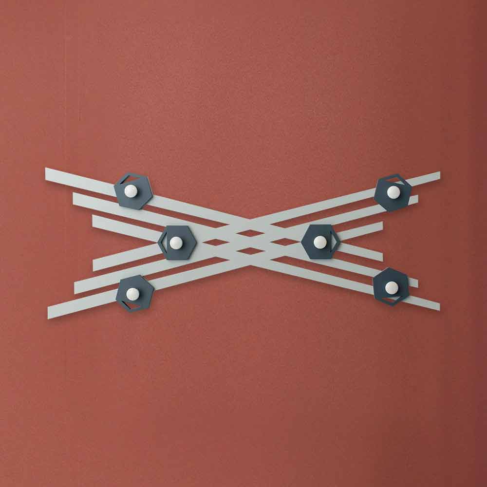Perchero de pared, diseño moderno en madera de color, hecho en Italia.