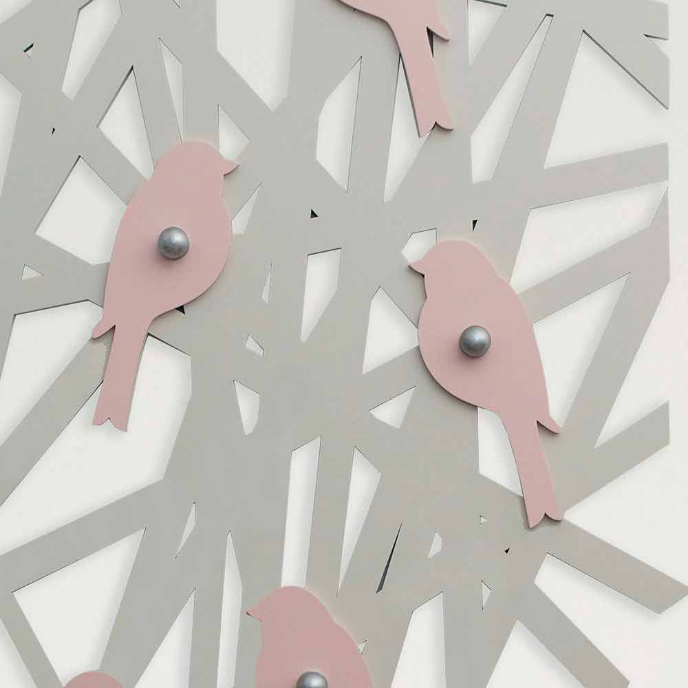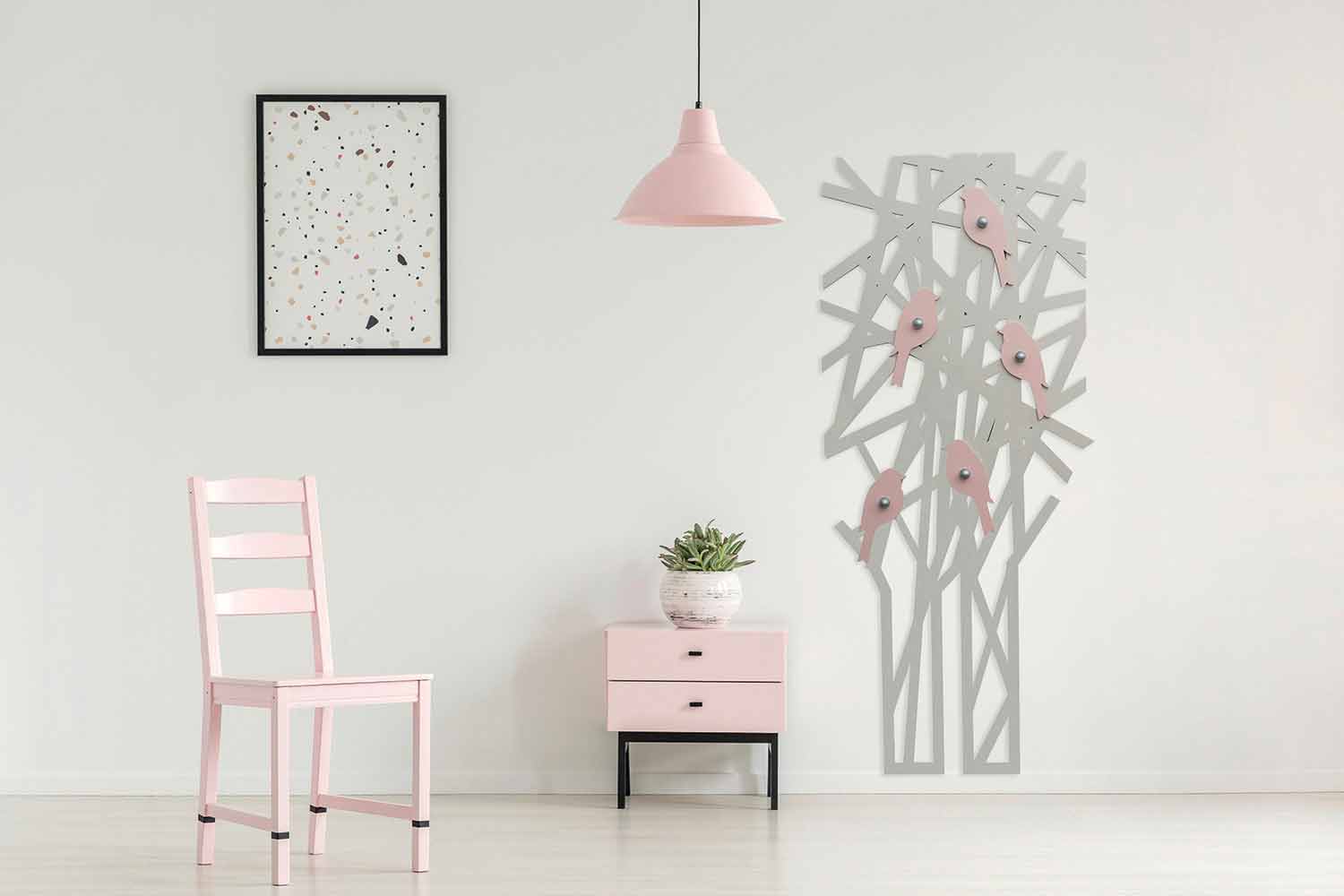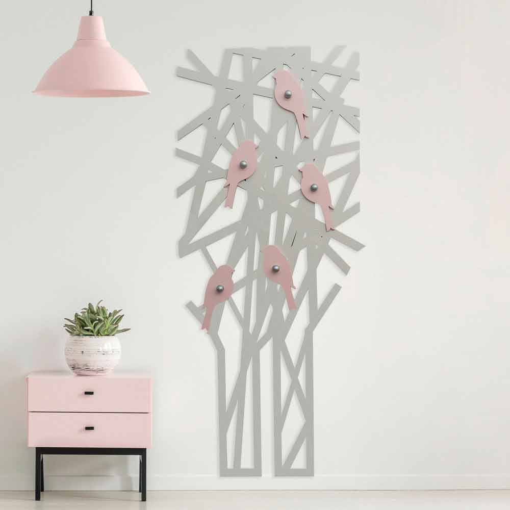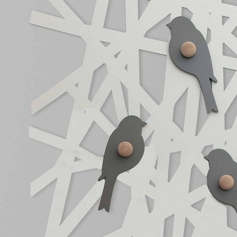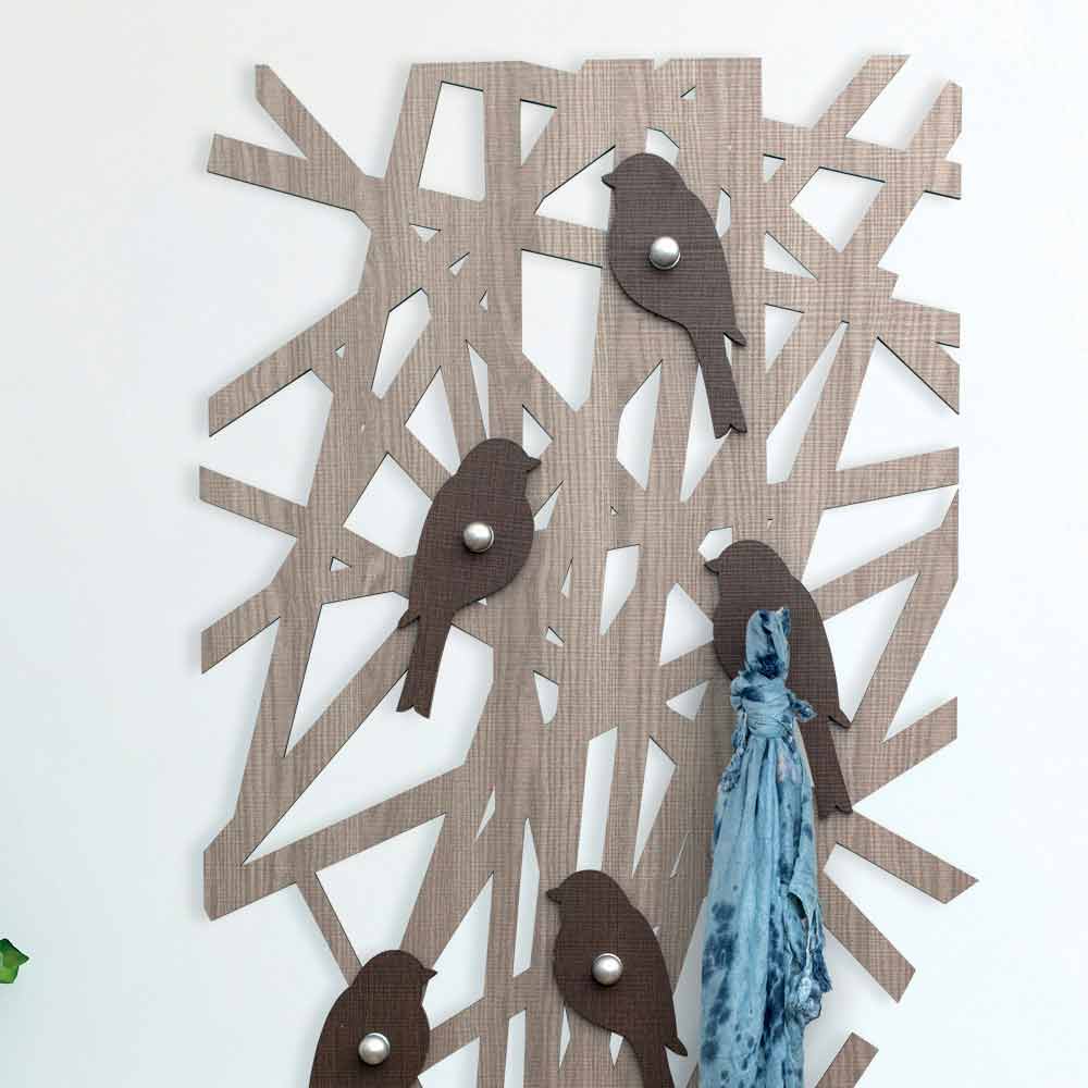 Colgador de pared para entrada, diseño moderno en forma de árbol estilizado con pájaros, hecho en Italia.