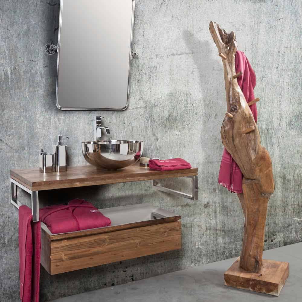Colgador de suelo para baño fabricado en madera maciza de teca.