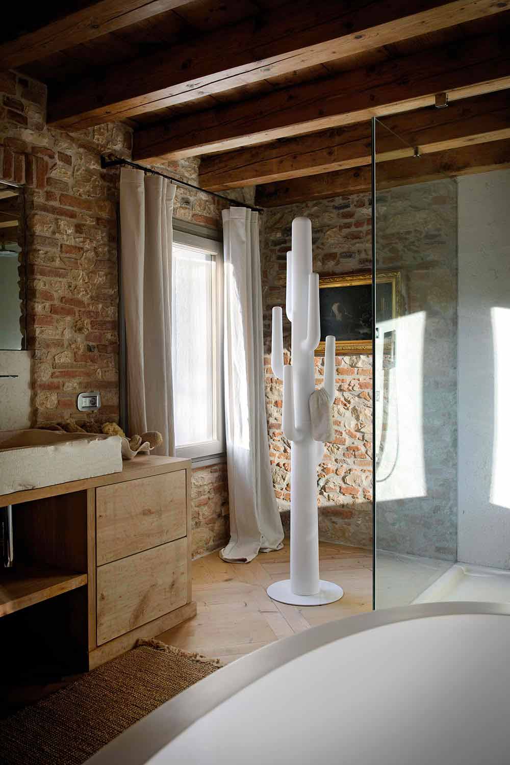 Este perchero está íntegramente fabricado en Italia con una estructura en polietileno , un material resistente a impactos de alta calidad que hace que el producto sea práctico y funcional sin descuidar el aspecto decorativo y visual. También incluye una base estabilizadora en metal pintado . Su diseño es precisamente lo que lo caracteriza ya que se asemeja a la forma de un cactus y está disponible en la versión mate o lacada, que es brillante y permite crear juegos de luces y reflejos que se vuelven protagonistas dentro del entorno.