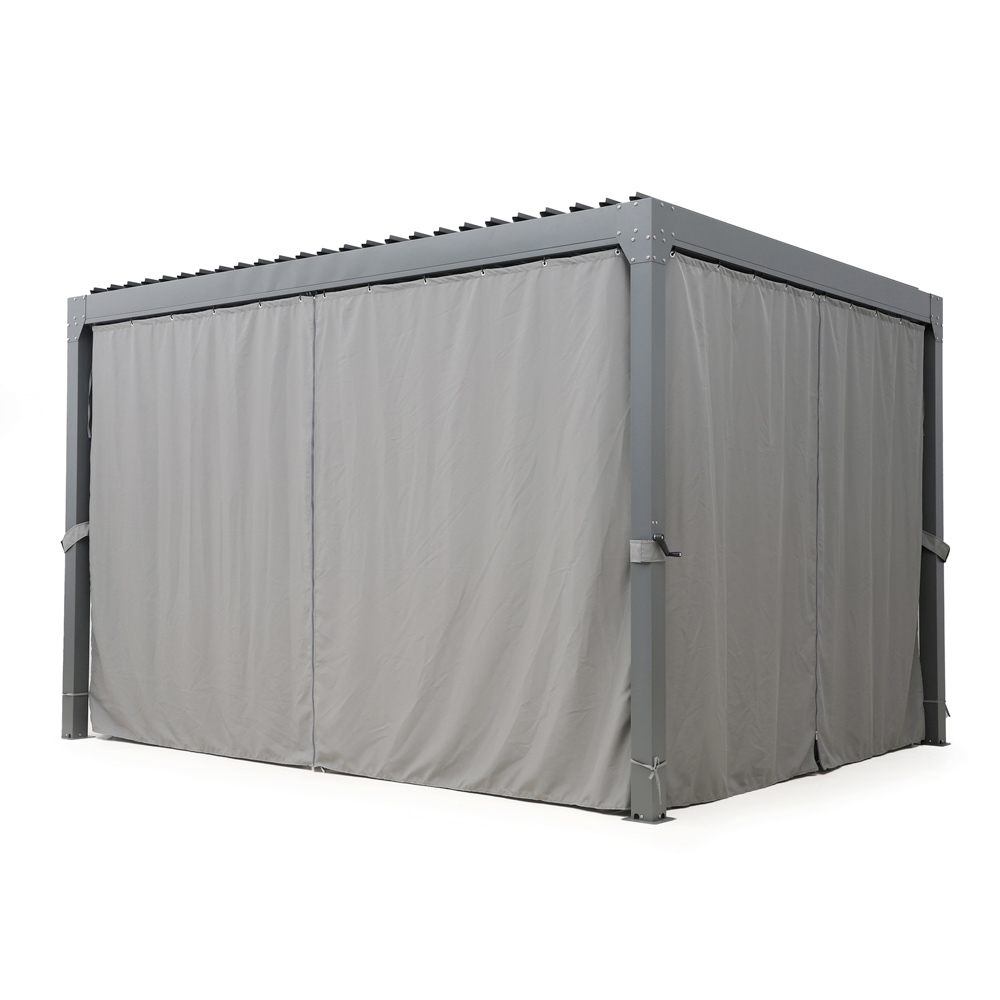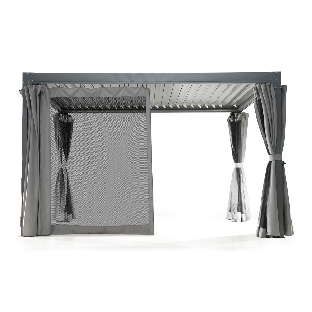 Esta pérgola de jardín representa el equilibrio perfecto entre diseño moderno y funcionalidad avanzada . Su estructura de aluminio pintado , sólida y resistente a la intemperie, aporta un toque de elegancia minimalista que se integra a la perfección en espacios exteriores de prestigio, como jardines privados , terrazas o bordes de piscina .