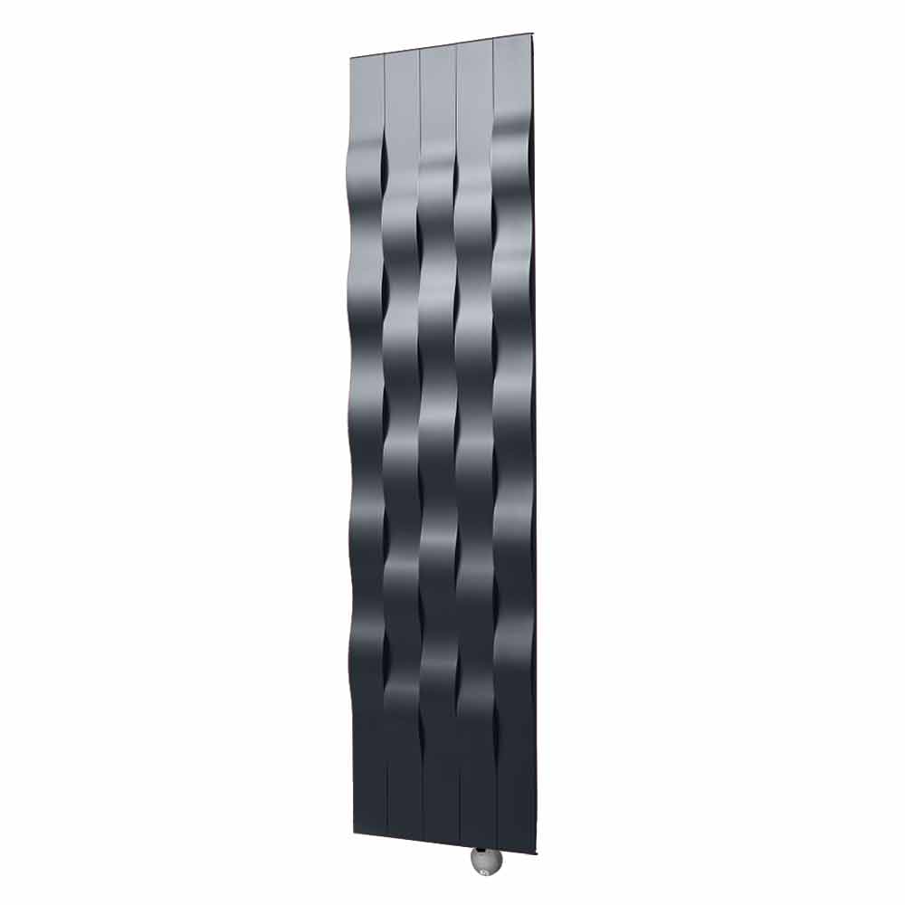 Esta placa radiante eléctrica presenta un diseño moderno con una superficie ondulada y aparentemente en movimiento para conceptos auténticos en el medio ambiente.