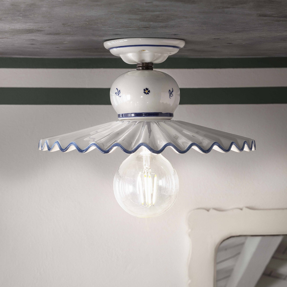 Esta lámpara de techo está totalmente fabricada a mano en metal y cerámica con decoración pintada a mano ,para resaltar la destreza y destreza manual de los artesanos. El diseño se caracteriza por el estilo campestre y los detalles románticos típicos de la campiña italiana que aportan frescura a las diferentes estancias.