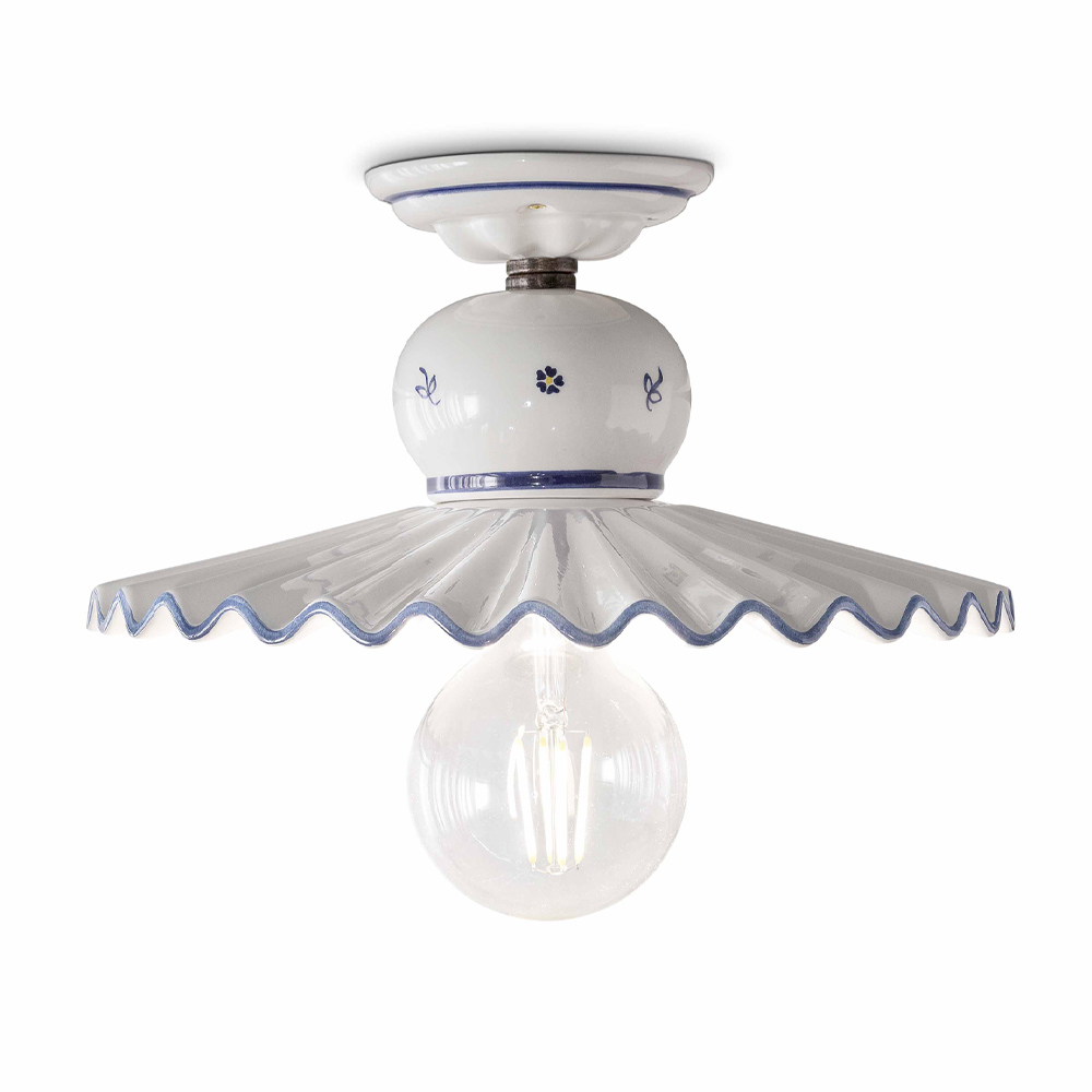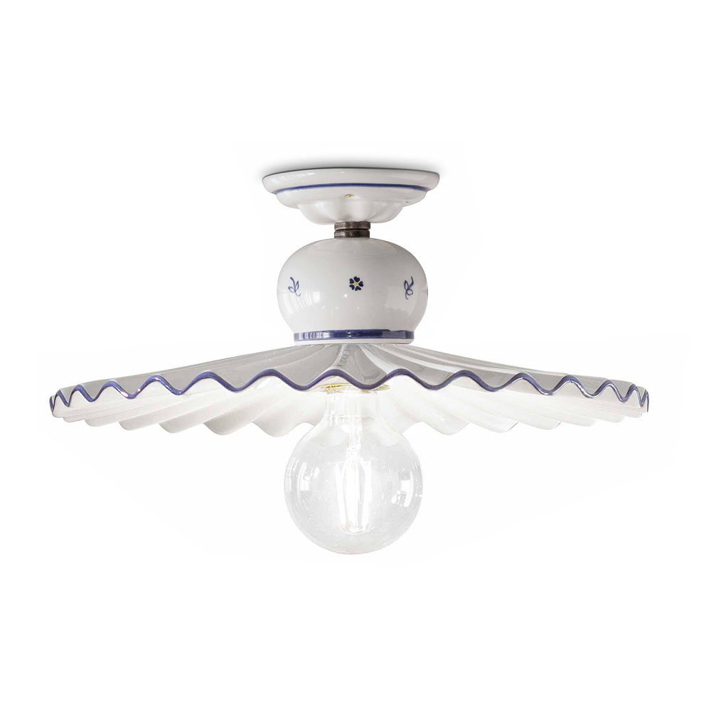 Lámpara de techo artesanal en metal y cerámica pintada a mano, 2 tamaños fabricada en Italia por Ferroluce.