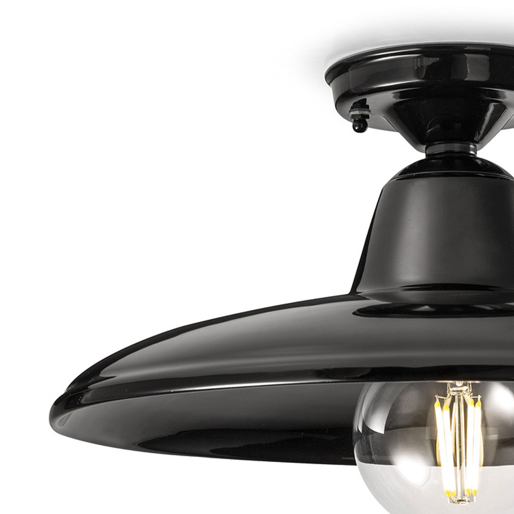 Plafón de estilo retro en cerámica negra o blanca y hierro fabricado en Italia por Ferroluce.