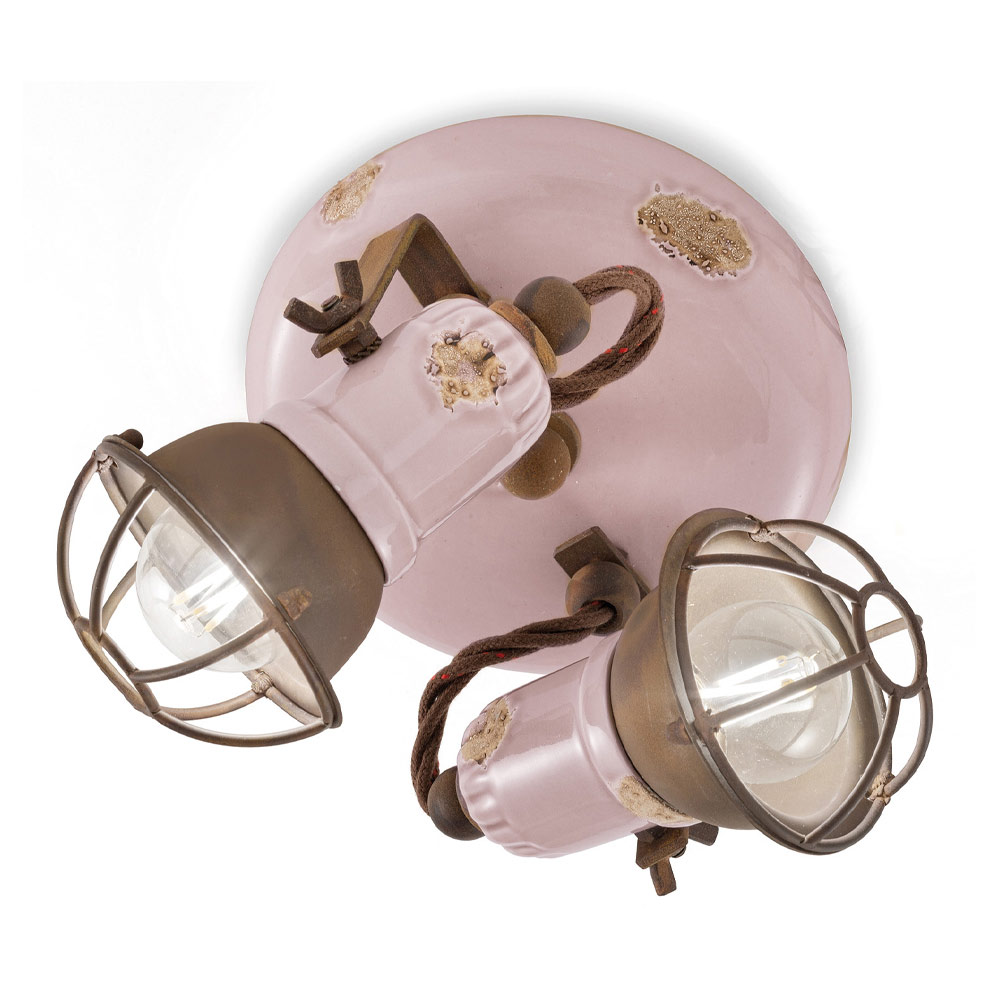Plafón 2 focos en cerámica y hierro diseño industrial fabricado en Italia por Ferroluce.