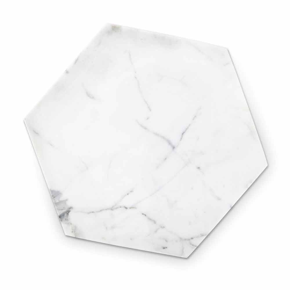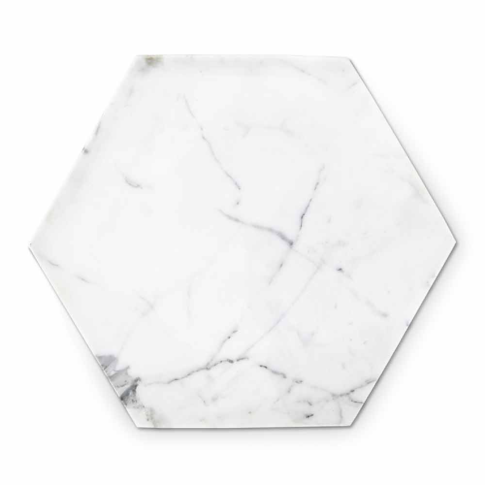 Placa de diseño hexagonal en mármol blanco de Carrara Made in Italy.