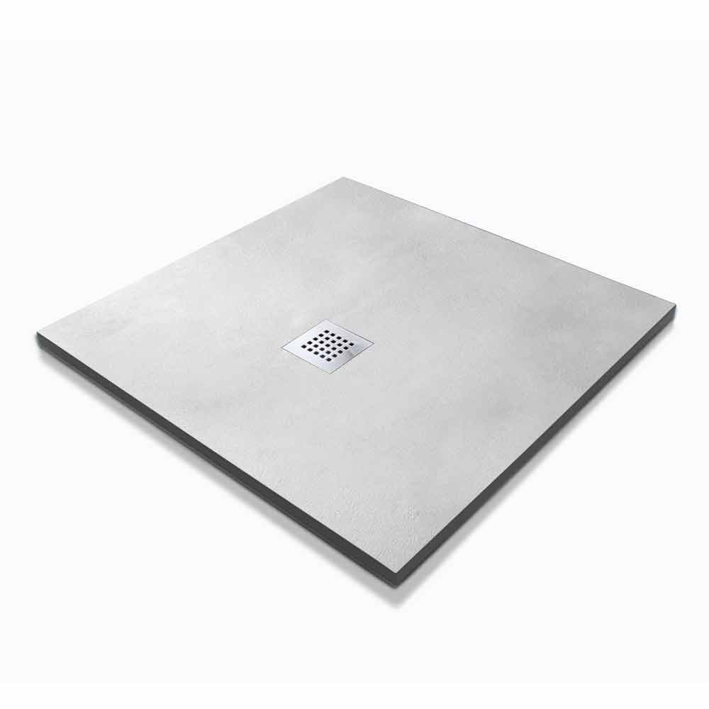 Plato de ducha moderno cuadrado 90x90 en resina con acabado efecto cemento.