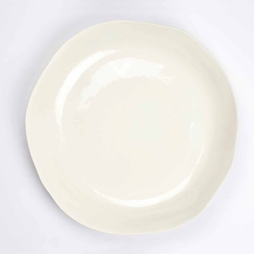 Plato redondo de porcelana blanca, pieza única de lujo hecha a mano en Italia.