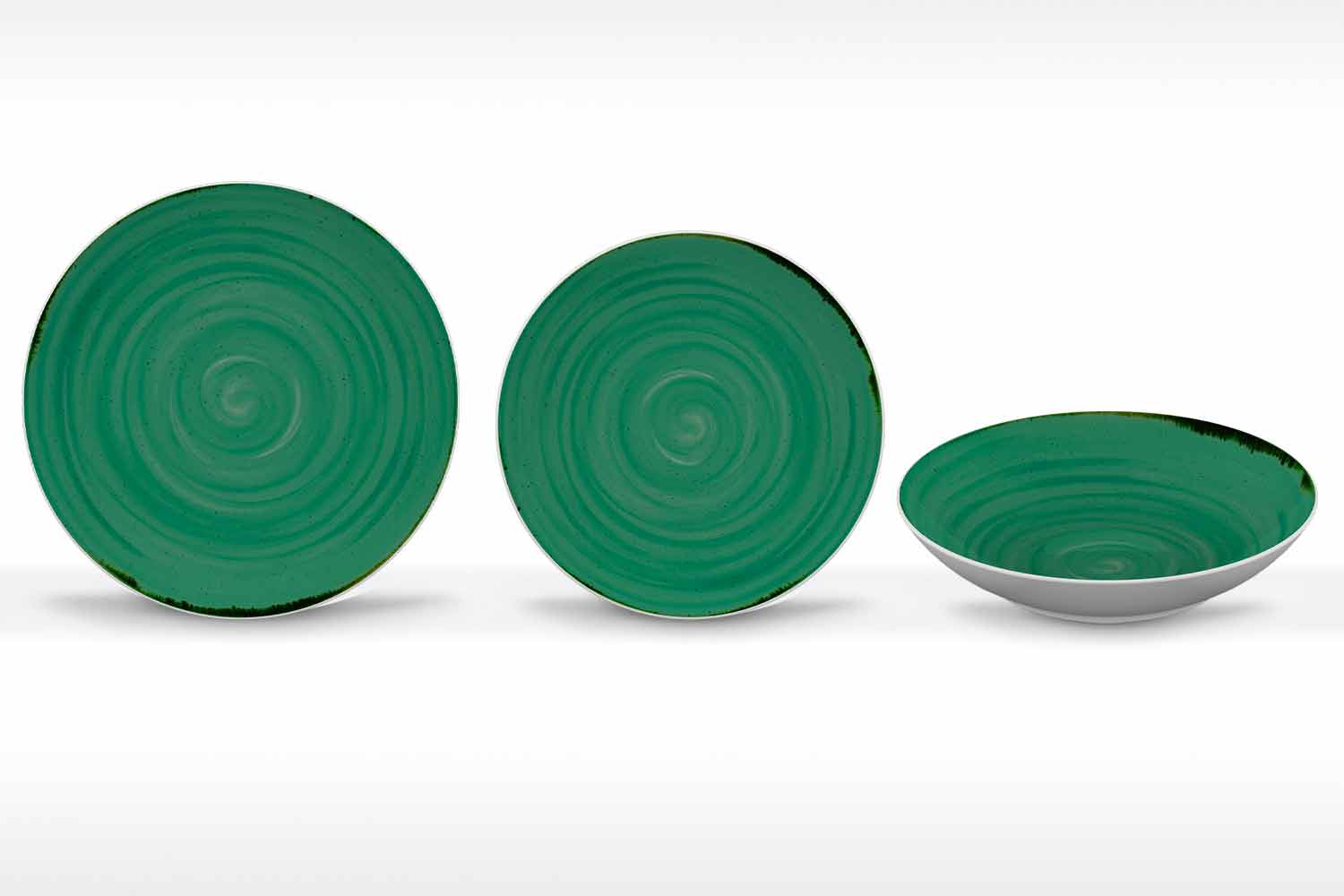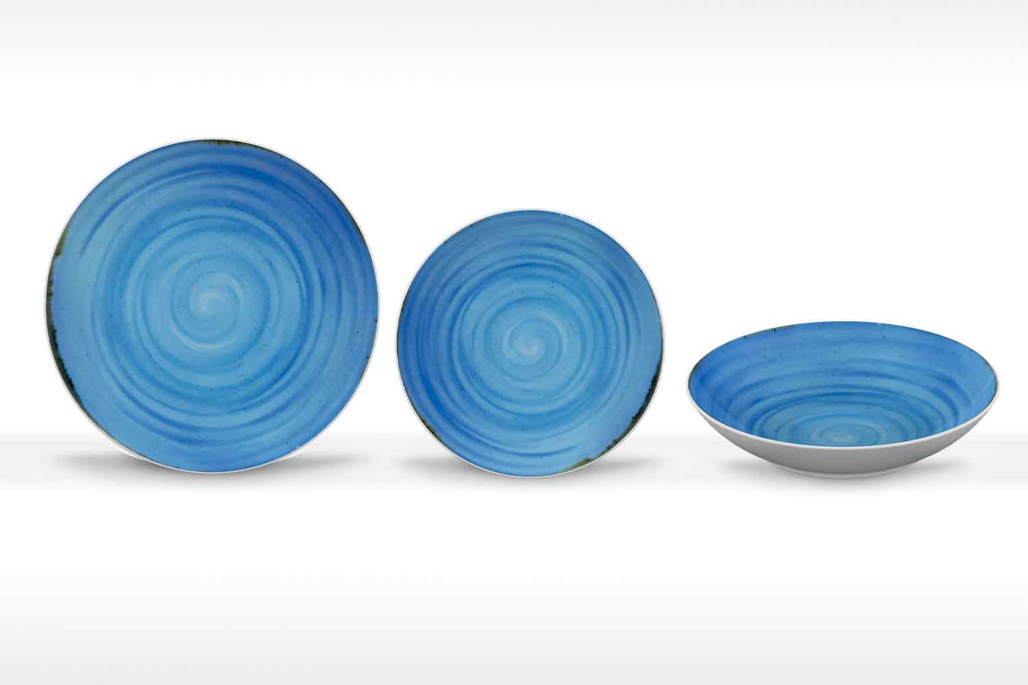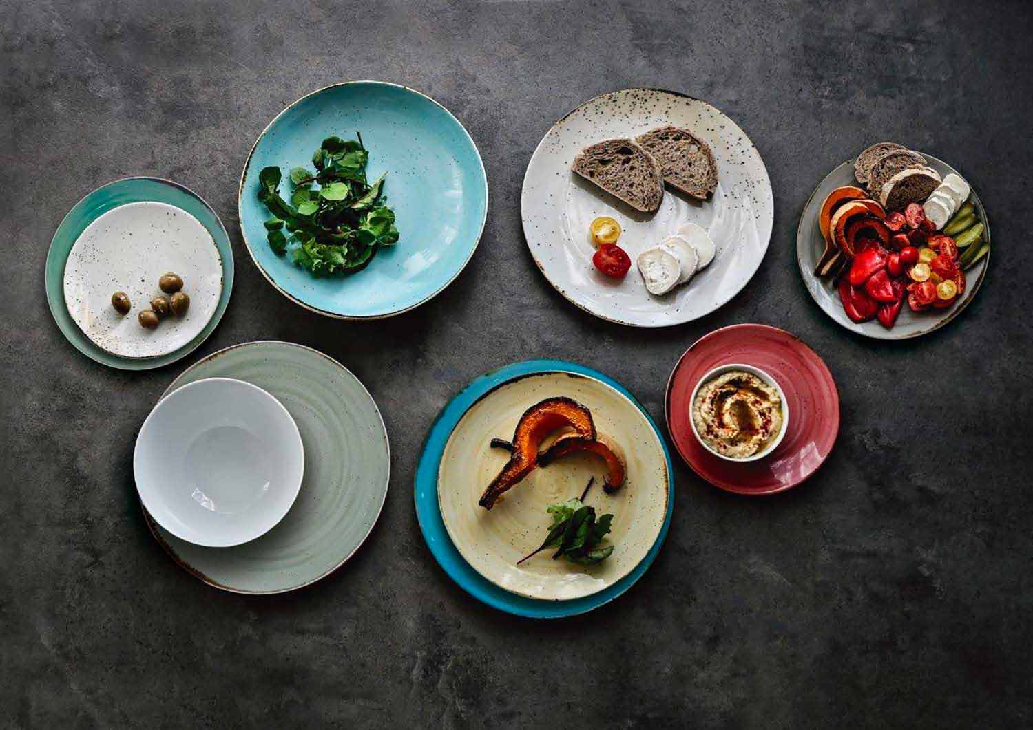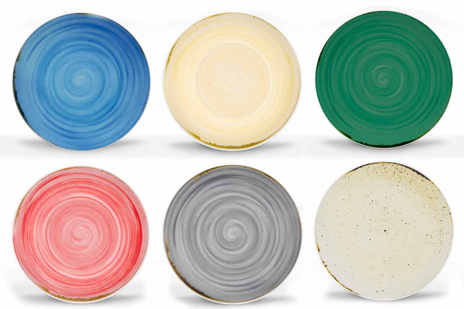 Plato llano moderno de diseño rústico en porcelana de colores, 18 piezas.