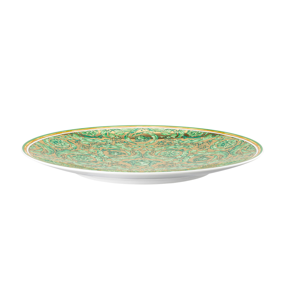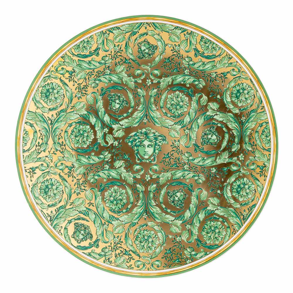 Los tonos verde esmeralda y los motivos barrocos entrelazados crean una atmósfera suntuosa y acogedora, transformando tu mesa en un escenario de ensueño. Perfecto para añadir un toque de glamour y sofisticación a tus cenas navideñas, es un objeto que combina tradición y modernidad con el estilo único de Versace.