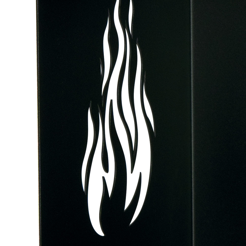 Este leñero de metal combina una funcionalidad práctica con un diseño atractivo para enriquecer el espacio de su chimenea. La estructura negra es resistente y robusta, diseñada para albergar una generosa cantidad de madera. Los oxicortes de los laterales no sólo sirven como elementos decorativos sino que también aseguran una correcta ventilación, fundamental para mantener la madera seca.