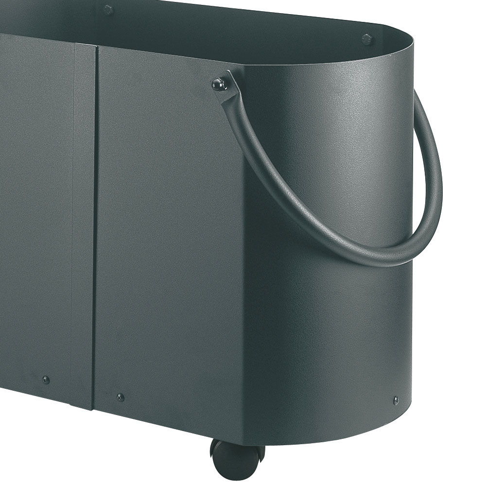 El diseño curvo y las asas laterales facilitan el transporte y añaden un elemento de estilo, mientras que las ruedas en la base garantizan una fácil movilidad, lo que le permite mover la leña con facilidad y sin esfuerzo. Este leñero no sólo es funcional sino que también sirve como un elegante punto focal en la habitación, enriqueciendo el ambiente con su presencia discreta y refinada.