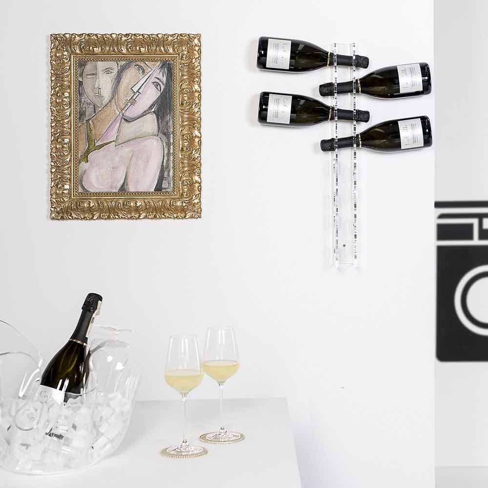 Porta pequeña pared de bebé transparente botellas L6xH60xP11cm Mueble de pared en plexiglás PMMA 100% polímero virgen, que le permite almacenar 8 botellas. Posibilidad de componer estructuras modulares para organizar mejor las botellas más preciadas. El plexiglás es a prueba de golpes, indeformable, inalterable y aislante del calor. El brillo y el brillo se mantienen constantes y sin cambios a lo largo del tiempo. El plexiglás de PMMA de polímero virgen utilizado por es no tóxico, hipoalergénico, inodoro y antibacteriano. 100% reciclable Cumple con UNI EN 71-3: 200. Diseñado, diseñado y fabricado en Italia, con materiales italianos.
