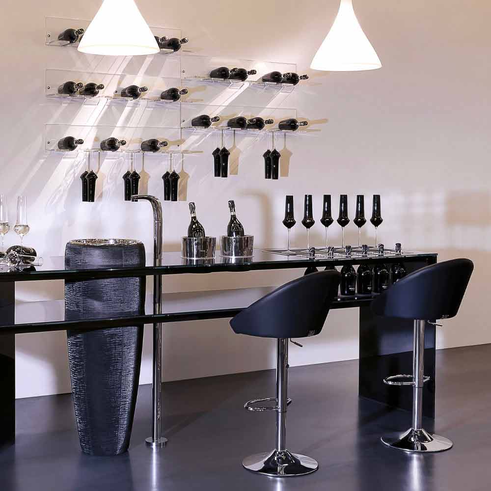 Portabotellas de pared para 6 botellas en plexiglás transparente Made in Italy.
