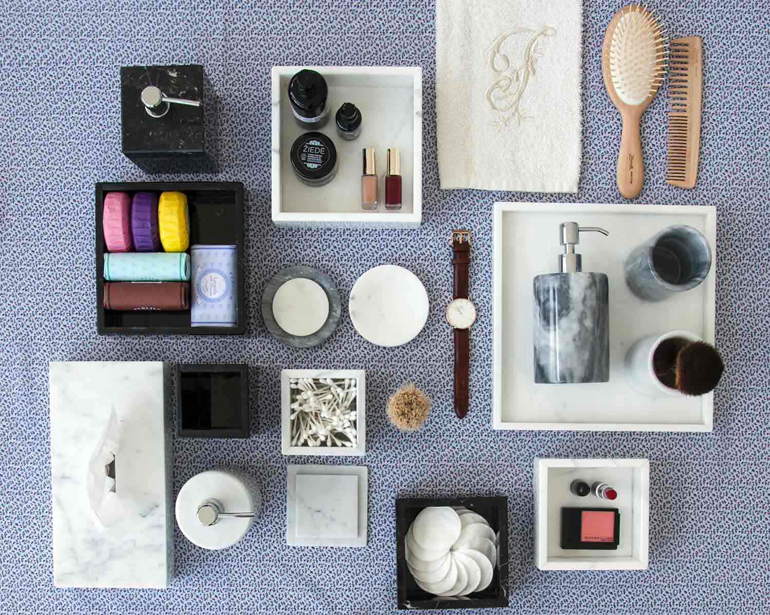 Portacepillos de vidrio fabricado íntegramente en mármol Paonazzo, una variedad de mármol precioso típico de la tradición italiana caracterizada por un fondo blanco mantequilla con vetas del azul intenso al naranja. Es una pieza única ya que cada bloque de mármol utilizado se diferencia de los demás por sus vetas y matices. Hecho a mano por profesionalesespecializada por generaciones en el procesamiento de mármol de alta calidad .