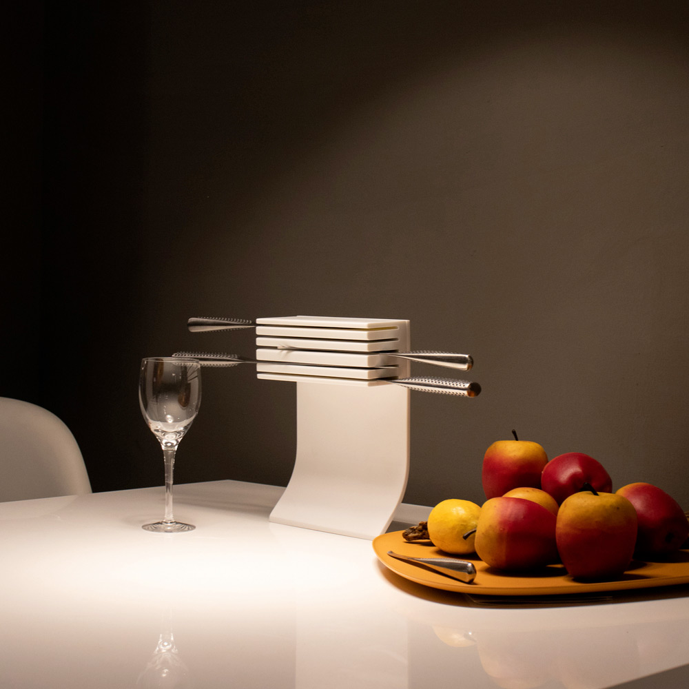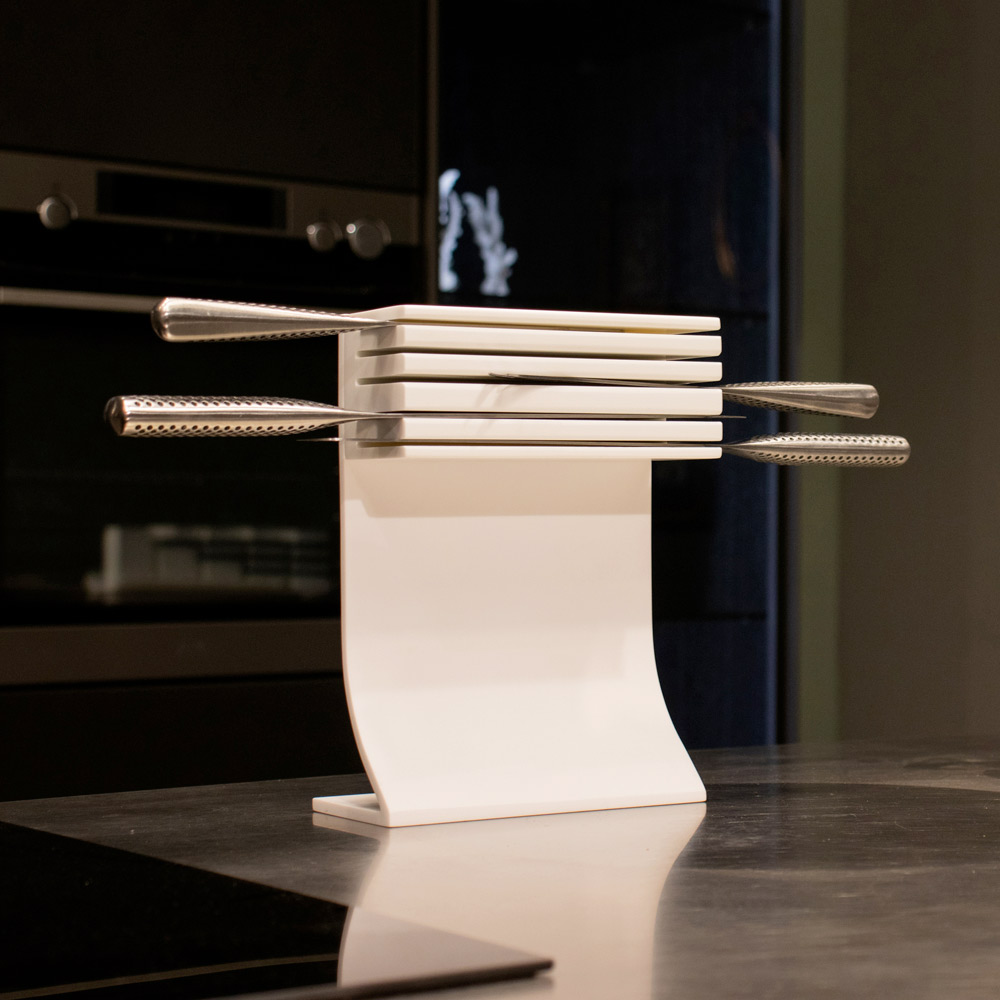 Portacuchillas en corian blanco con 5 hojas, de alta calidad made in Italy.