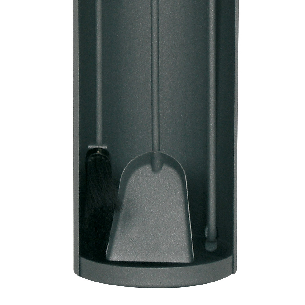 Fabricado con materiales duraderos, este juego incluye todas las herramientas necesarias para el manejo y mantenimiento de su chimenea, cada una con mangos ergonómicos que prometen comodidad y seguridad en el uso diario. La organización vertical de herramientas maximiza el espacio y facilita el acceso a cada una de ellas.