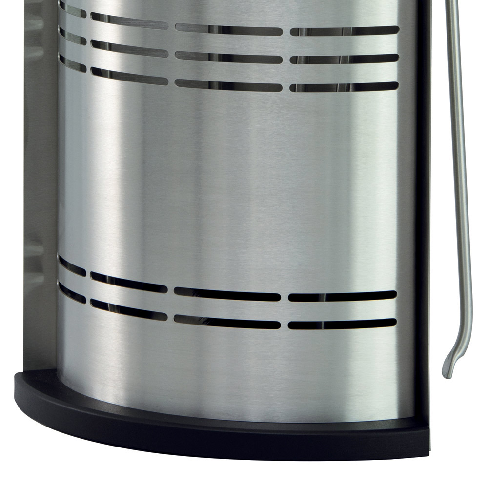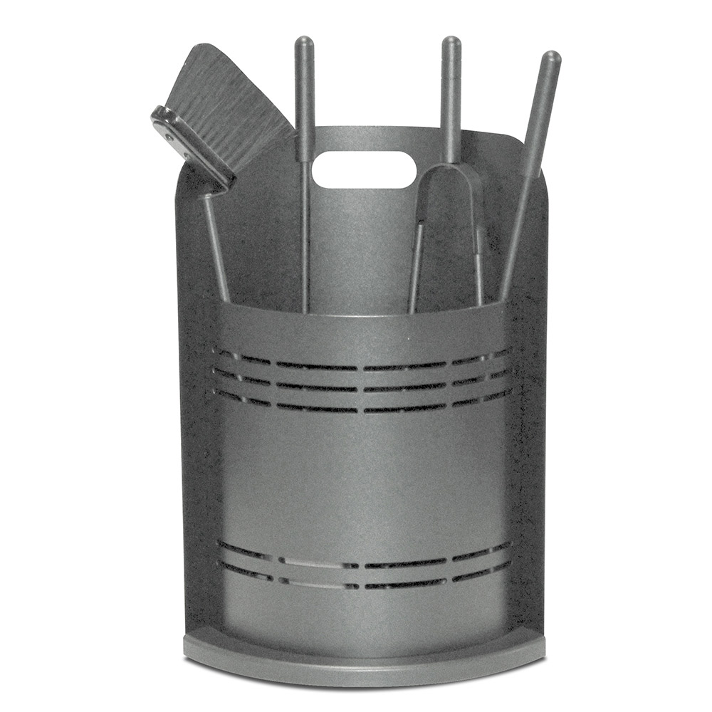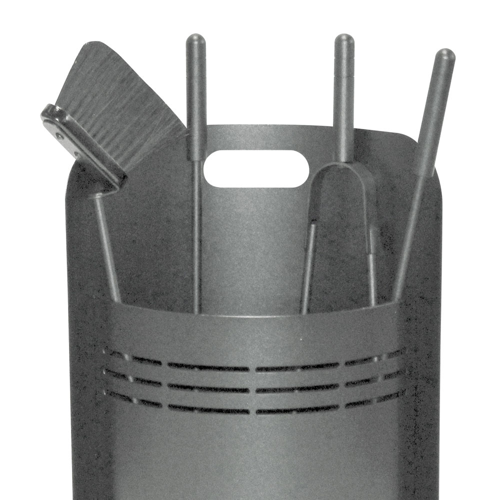 Este portaherramientas para chimenea es ideal para quienes buscan un toque de diseño contemporáneo . Su forma cilíndrica es elegante y ahorra espacio, mientras que las ranuras horizontales no sólo crean un detalle visual llamativo sino que también garantizan una ventilación adecuada para el equipo.