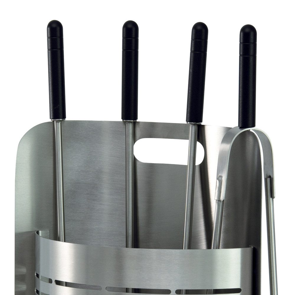 El set incluye 4 accesorios , todos ellos imprescindibles para el mantenimiento del fuego y la limpieza de la chimenea. La presencia de un asa en la parte superior le permite levantar fácilmente todo el portaherramientas y moverlo donde desee. Su diseño es funcional pero no descuida la estética, con líneas limpias y una estructura sólida que lo convierte en un elemento duradero y elegante dentro del hogar.