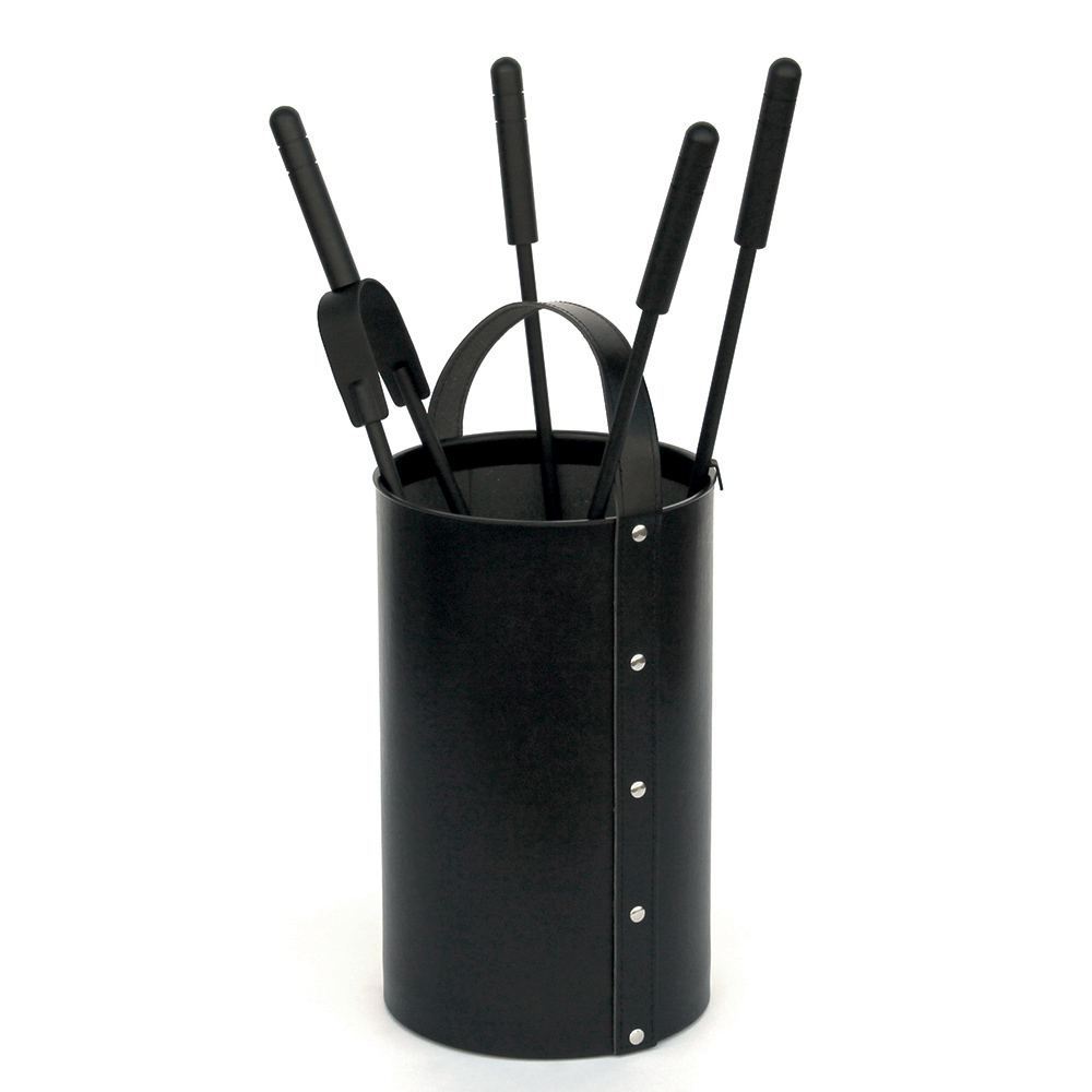 Este portaherramientas de diseño cilíndrico es un complemento elegante y práctico para el manejo y mantenimiento de chimeneas . El contenedor no sólo ayuda a mantener ordenada la zona de la chimenea, sino que también sirve como pieza de diseño que aporta un toque rústico y acogedor al espacio.