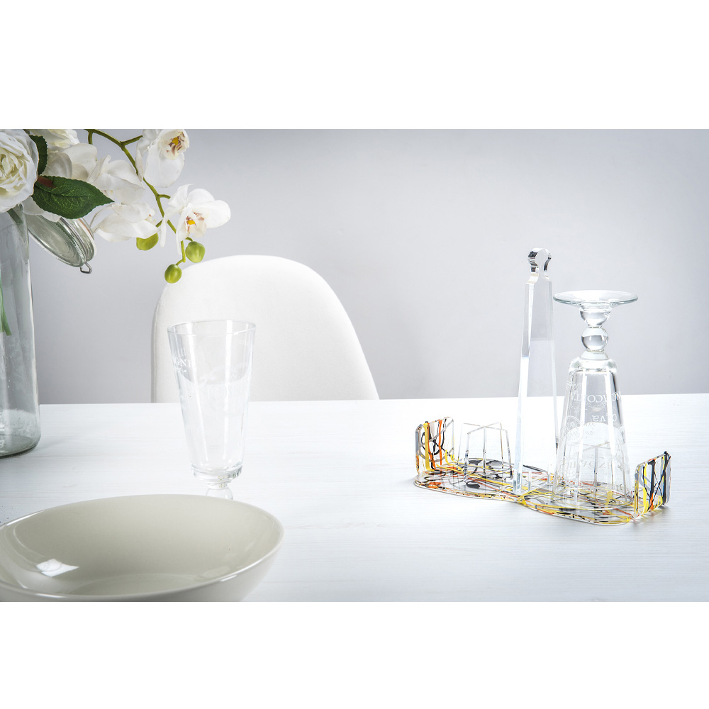 Portavasos de plexiglás multicolor fabricado en Italia.