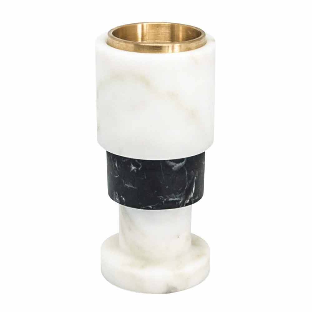 Portavelas de diseño fabricado en mármol blanco de Carrara, mármol negro de Marquinia y latón Made in Italy.