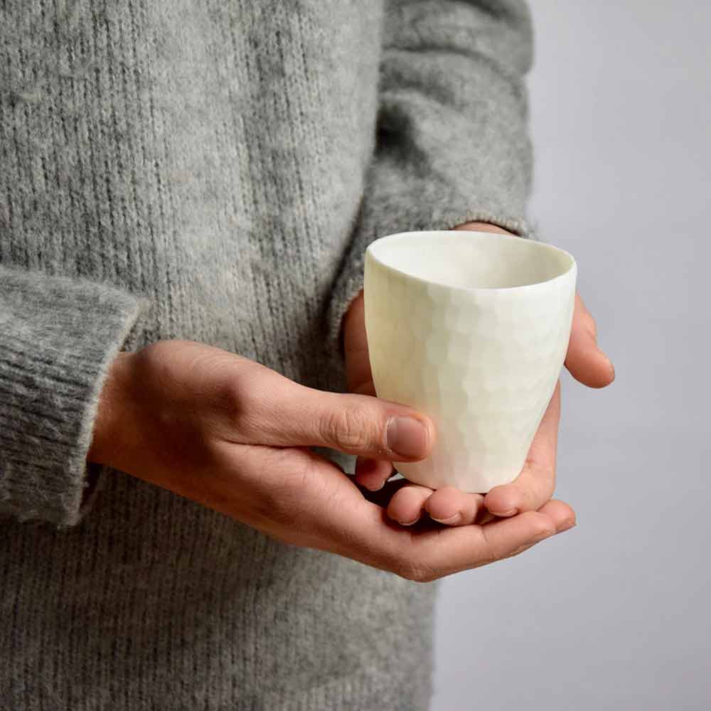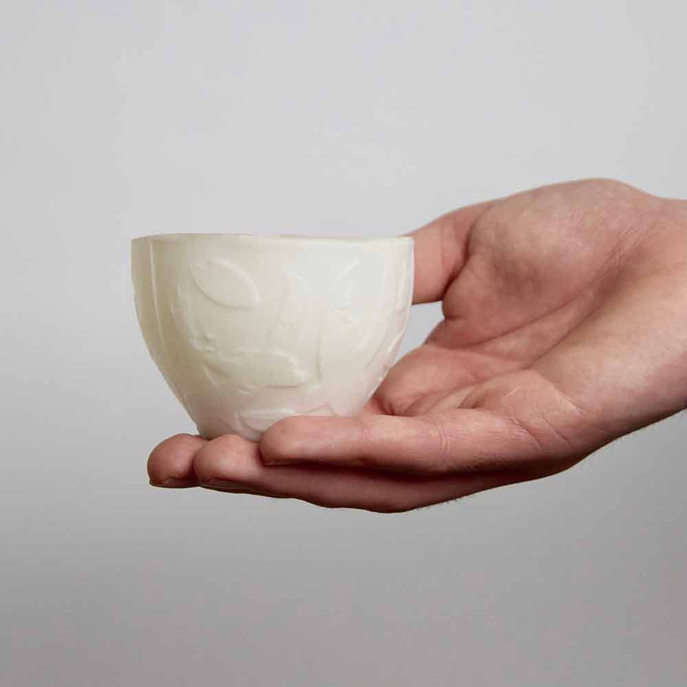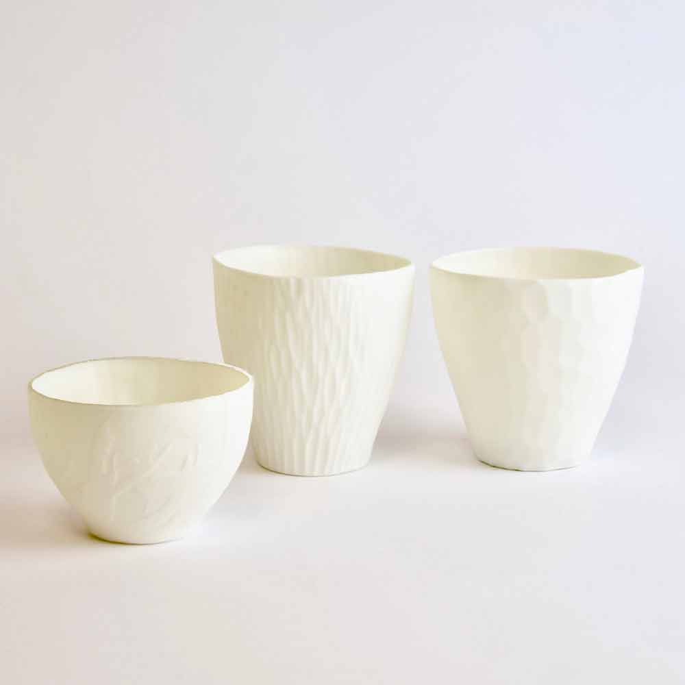 Se obtienen mediante la técnica del vaciado , que permite obtener superficies muy delgadas con el fin de enfatizar las propiedades de la porcelana y su translucidez, evocando su sensaulidad y singularidad.