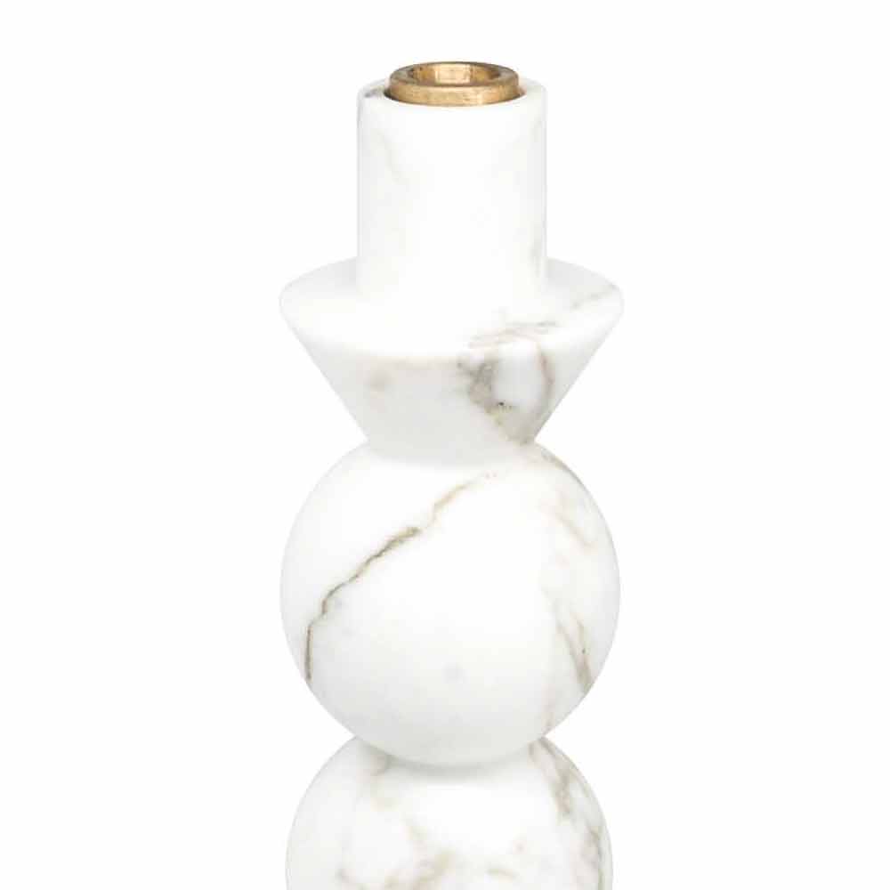 Portavelas de diseño en mármol blanco de Carrara y latón Made in Italy.