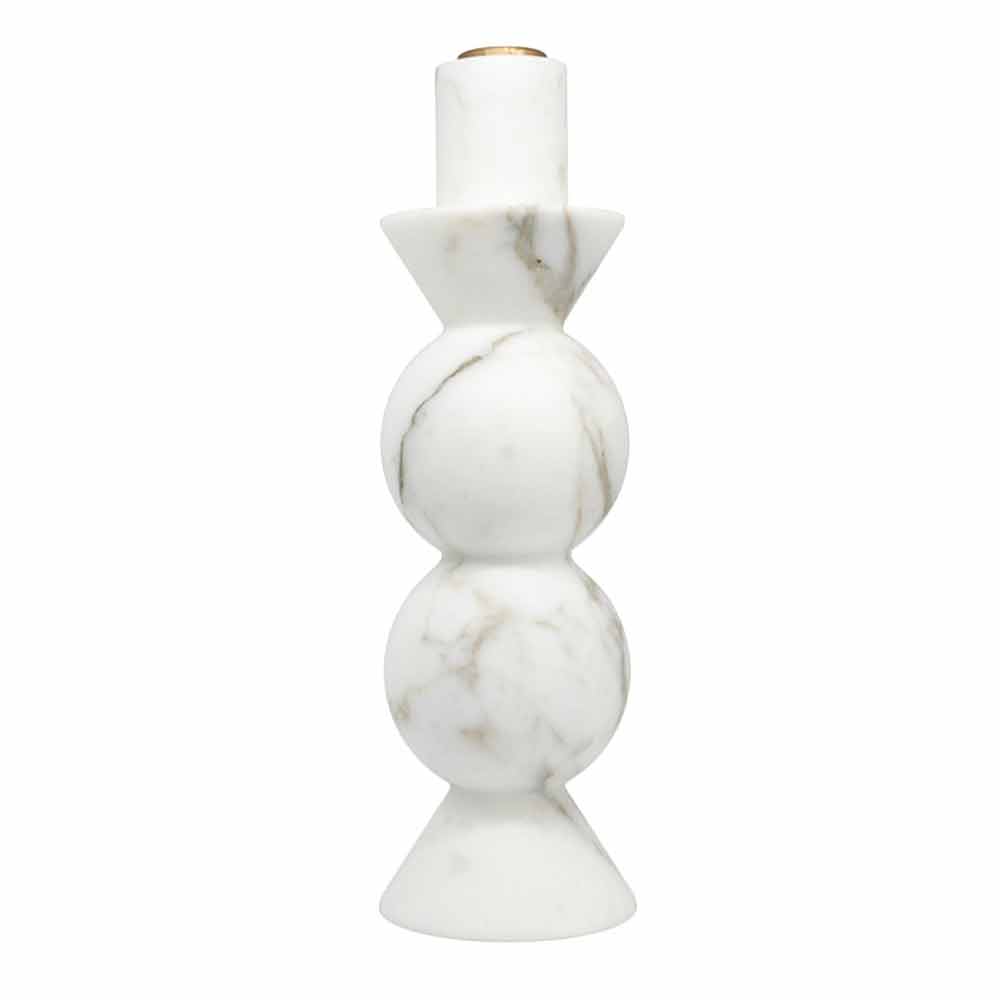Portavelas fabricado en mármol blanco de Carrara y latón de alta calidad. Pieza única ya que cada bloque de mármol utilizado es diferente en vetas y tonalidades. El mármol proviene de la cantera de Poggio Silvestre que es una fuente de mármol blanco de primera calidad clasificado desde el siglo pasado.
