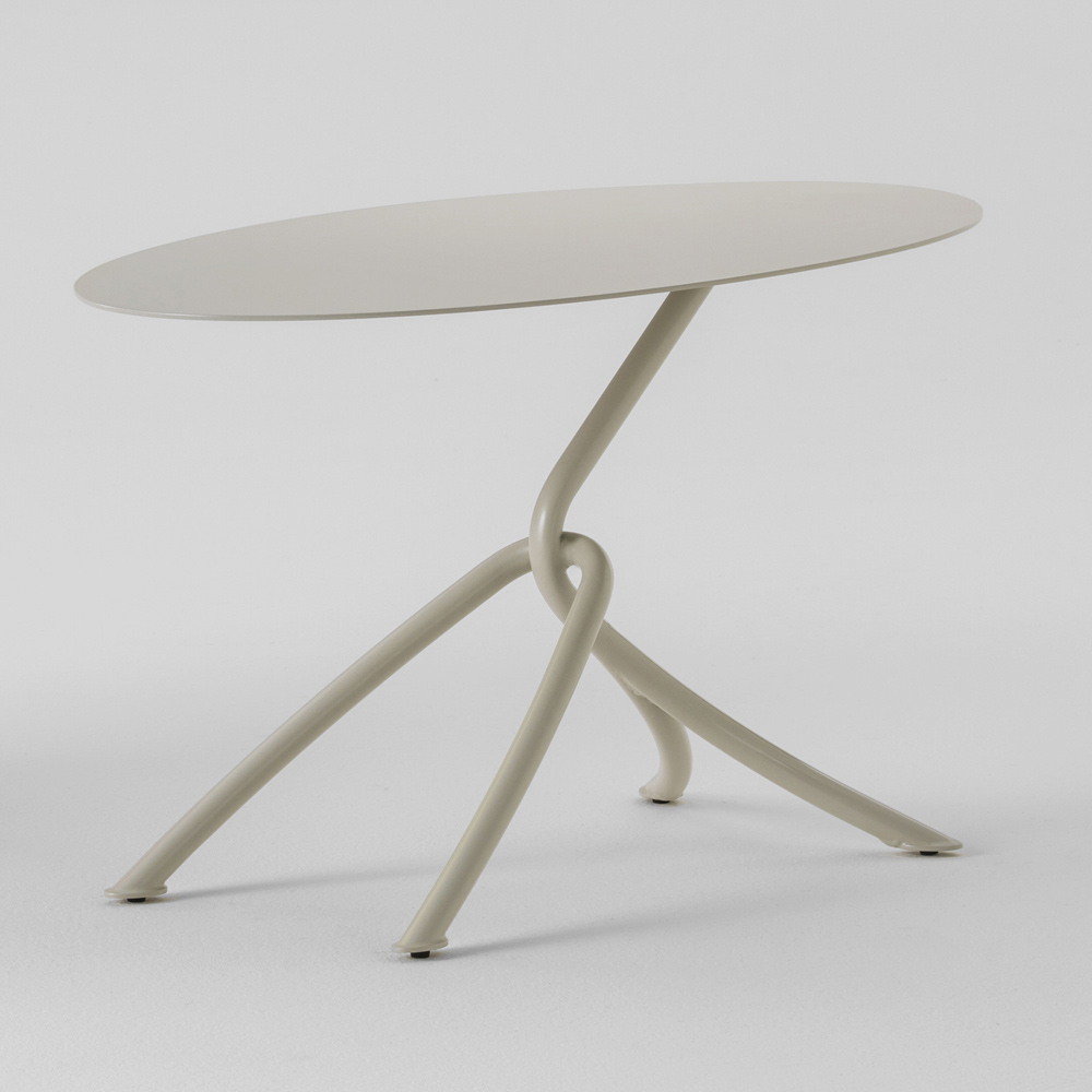 Mesa de centro de exterior moderna fabricada en Italia con estructura y tapa en metal pintado . Un diseño innovador y particularmente original caracteriza este accesorio para amueblar espacios exteriores como jardines, verandas o terrazas donde se debe mantener un estilo creativo y vanguardista. Lo que la hace lucir única es la forma inusual de la base que crea una sensación de movimiento y una maravillosa armonía entre las líneas junto con la parte superior ovalada que aumenta su singularidad y enriquece la estética con un nuevo toque.
