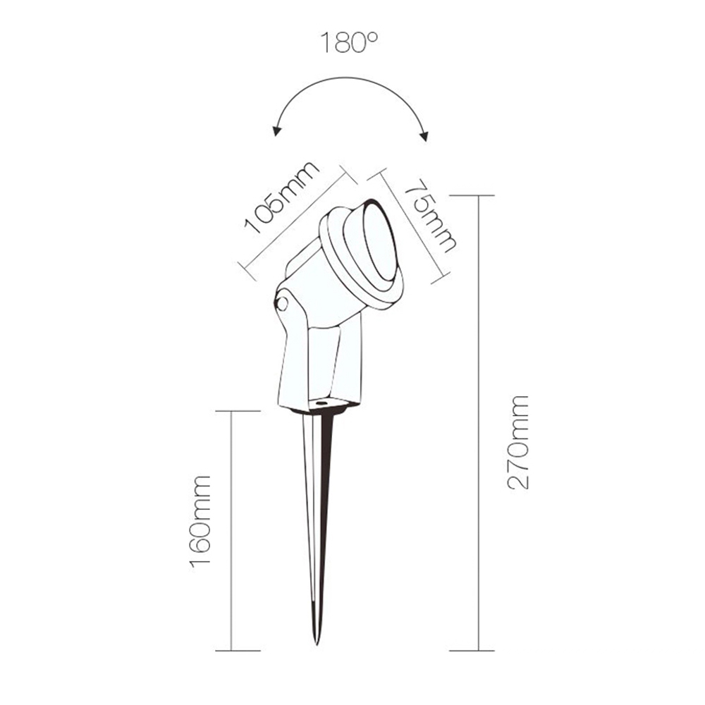 Proyector de foco exterioren fundición de aluminio negro con cuerpo orientable 180 ° completo con LED de 5W . Foco LED para exterior con punta para empotrar en el suelo caracterizado por un estilo minimalista y alta funcionalidad que permite proyectar un haz de luz diferente según tus necesidades gracias a la posibilidad de orientarlo según tus necesidades. Ideal para iluminar plantas, árboles, parterres dentro de espacios exteriores como jardines tanto en espacios domésticos como en ambientes contract.