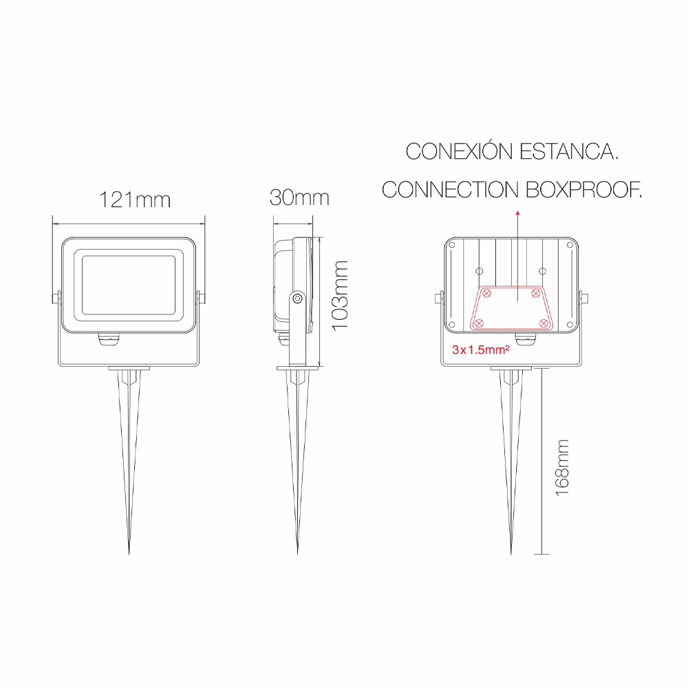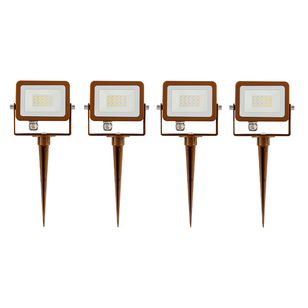 Proyector de led de exterior en aluminio con acabado corten, 4 piezas.