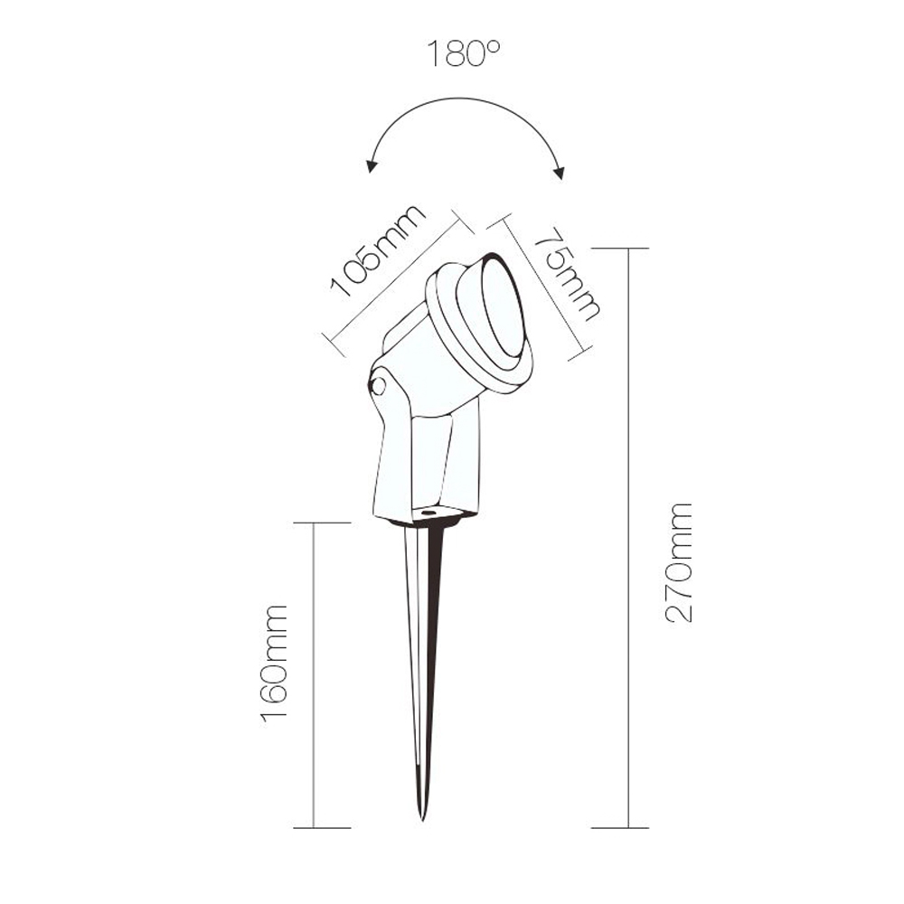 Foco de exteriorcon estructura de fundición de aluminio negro completa con LED de 3W con cuerpo orientable 180 °. Un spot LED para exterior con punta para empotrar en el suelo con un diseño moderno y versátil que proyecta un haz de luz diferente según las necesidades gracias a la posibilidad de orientarlo según tus necesidades. Ideal para iluminar plantas, árboles, parterres dentro de espacios exteriores como jardines tanto en espacios domésticos como en ambientes contract.
