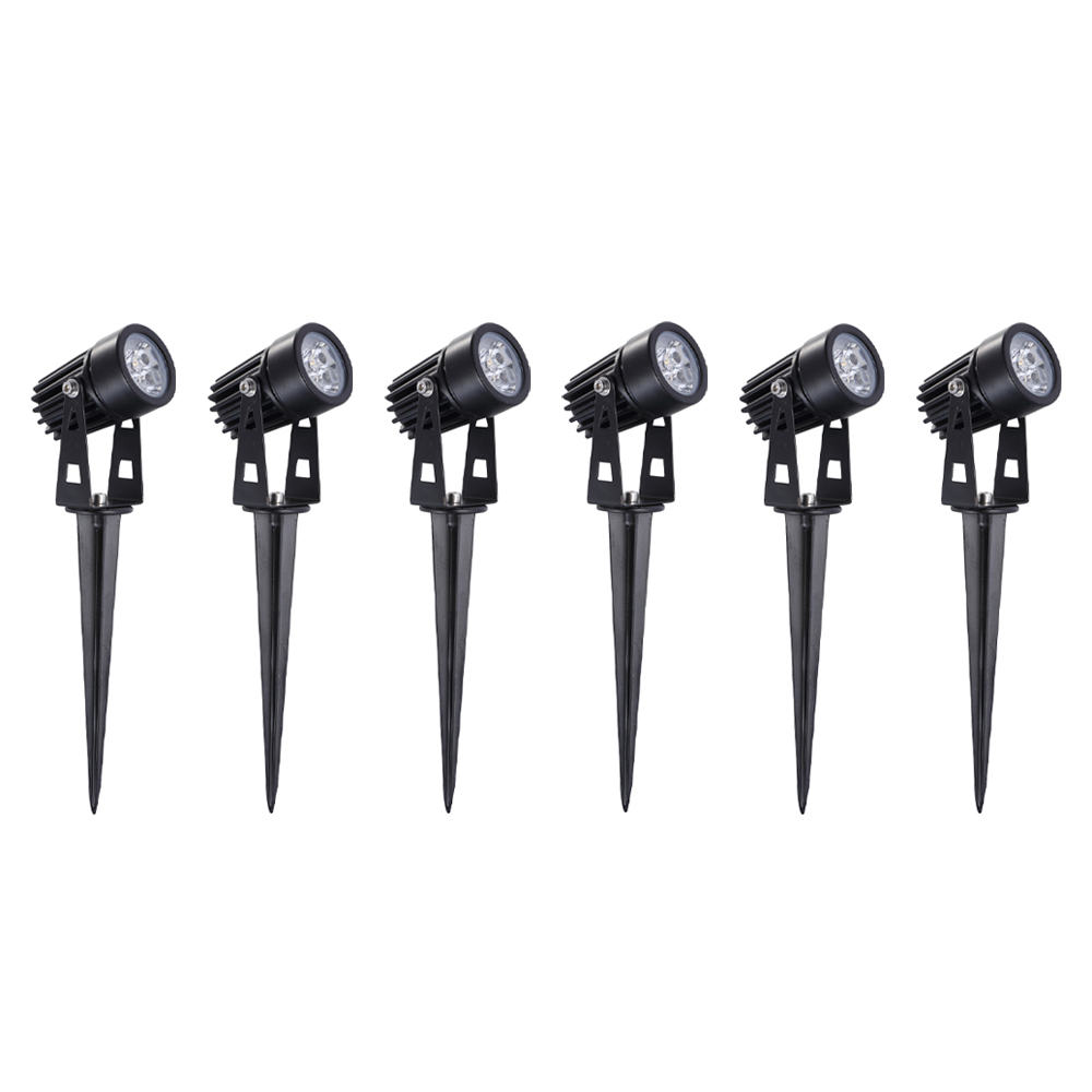 Foco de exterior en aluminio negro completo con LED, 6 piezas.