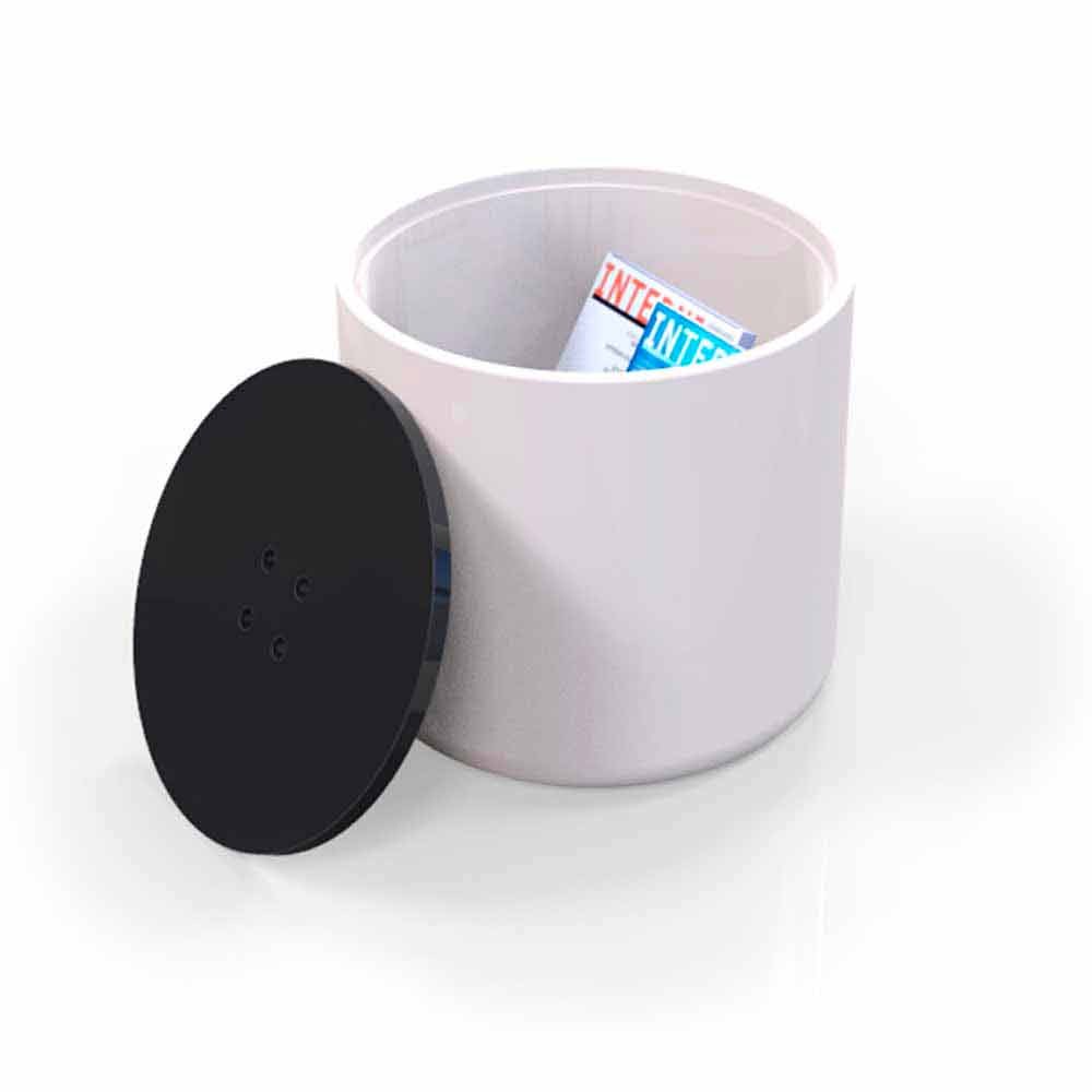Button es una excelente solución para ahorrar espacio porque cuenta con un práctico compartimento interno al que se accede quitando la tapa con forma de botón.