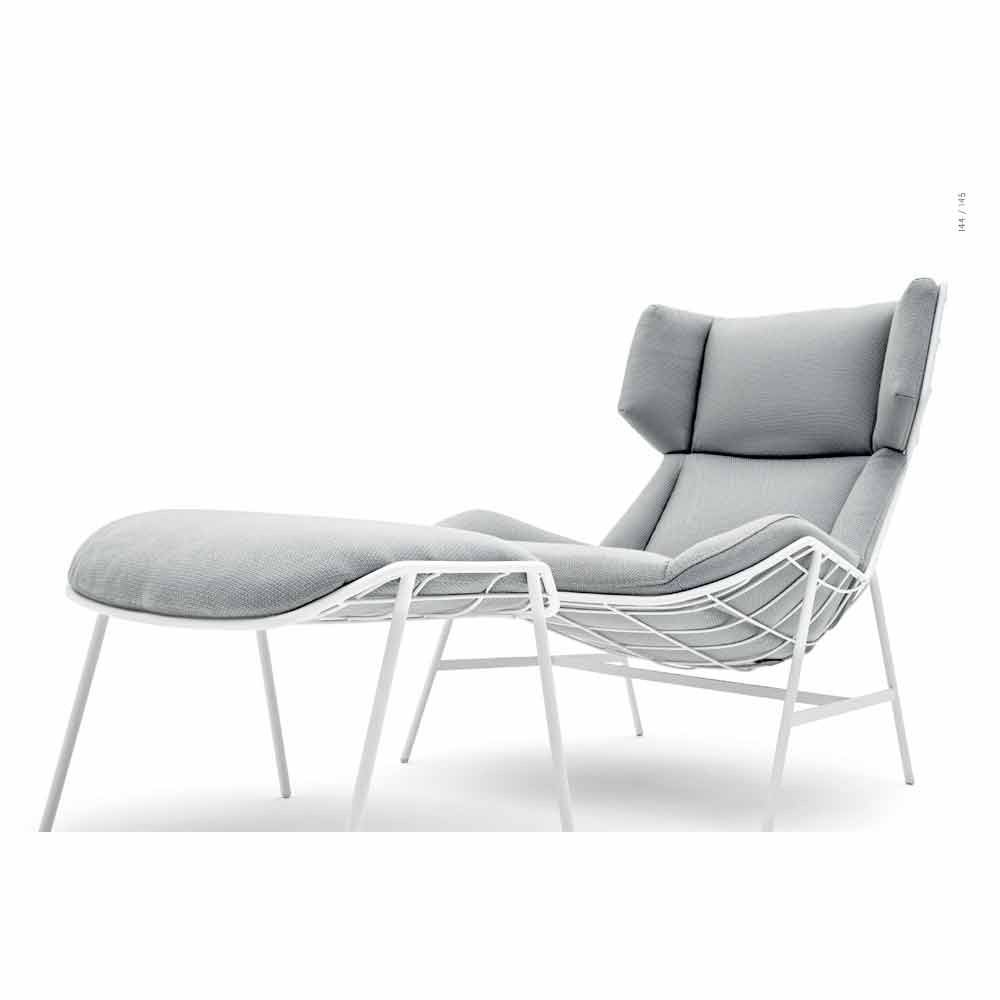 Summer Set es un prodigioso puf / reposapiés de jardín, caracterizado por una estructura de carga en acero con recubrimiento en polvo con una opción entre blanco o negro ; Asiento y cojín del respaldo tapizado en tela y acolchado con gomas Dryfeel.