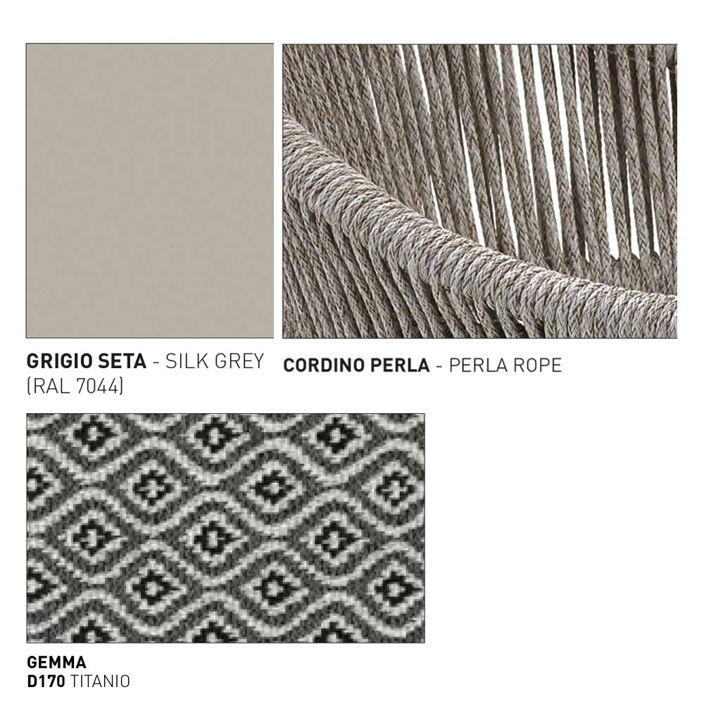 Puf de jardín compuesto por una estructura de aluminio pintado en polvo con acabado gris seda, fibra tejida a mano con acabado perlado y asiento con acolchado . Un mueble para espacios exteriores o interiores capaz de completar el confort y el estilo del entorno circundante para un resultado acogedor y una estética contemporánea .