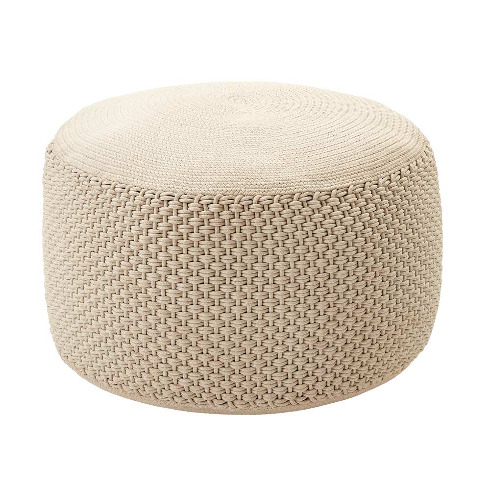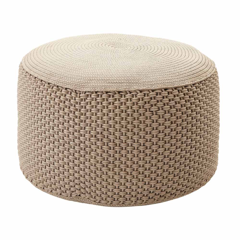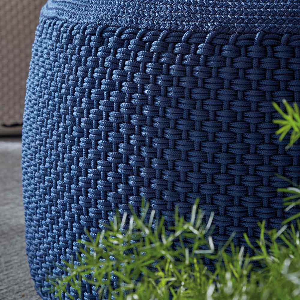 Puf otomano redondo para interior o exterior en fibra de poliéster azul, gris tórtola o cáñamo, artículo de calidad made in Italy.