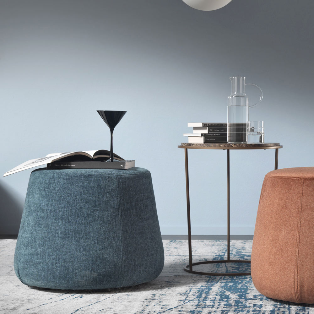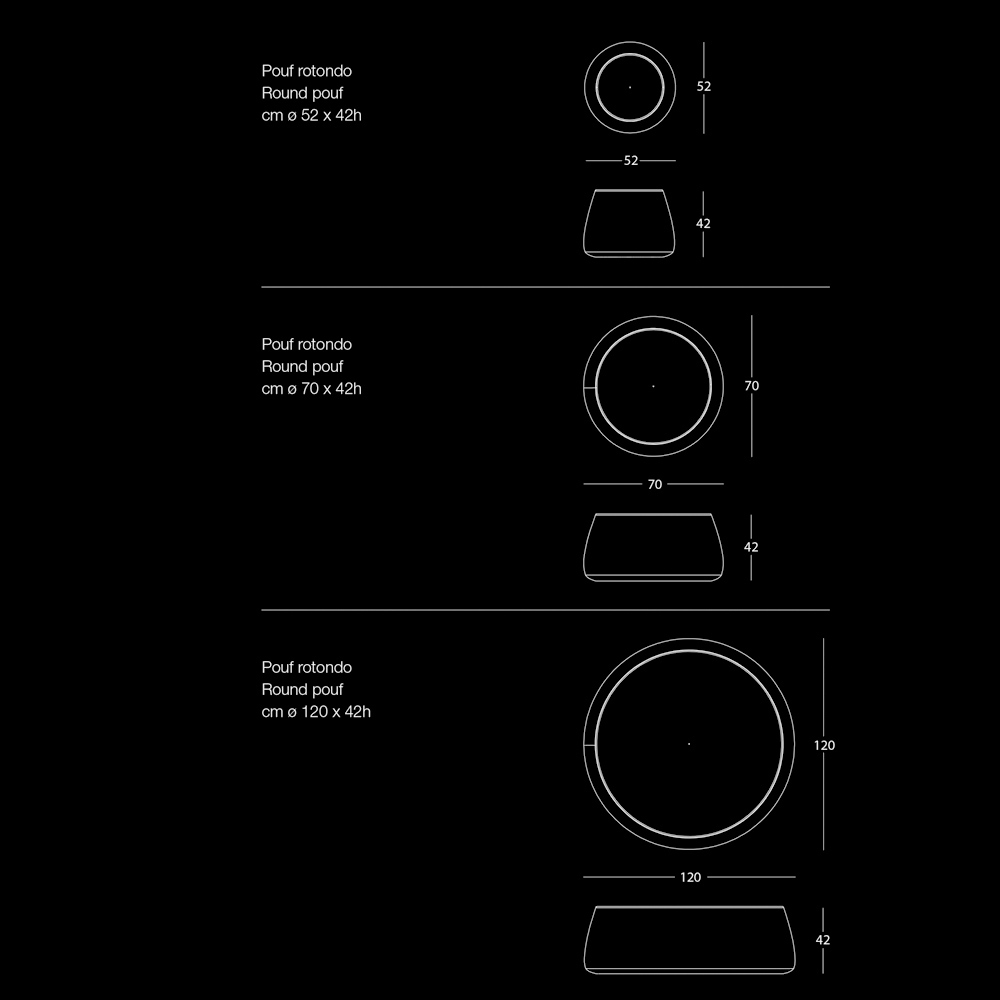 El puf de diseño moderno y redondo disponible en tres anchos diferentes está completamente revestido en suave funda desenfundable de chenilla disponible en 6 acabados.