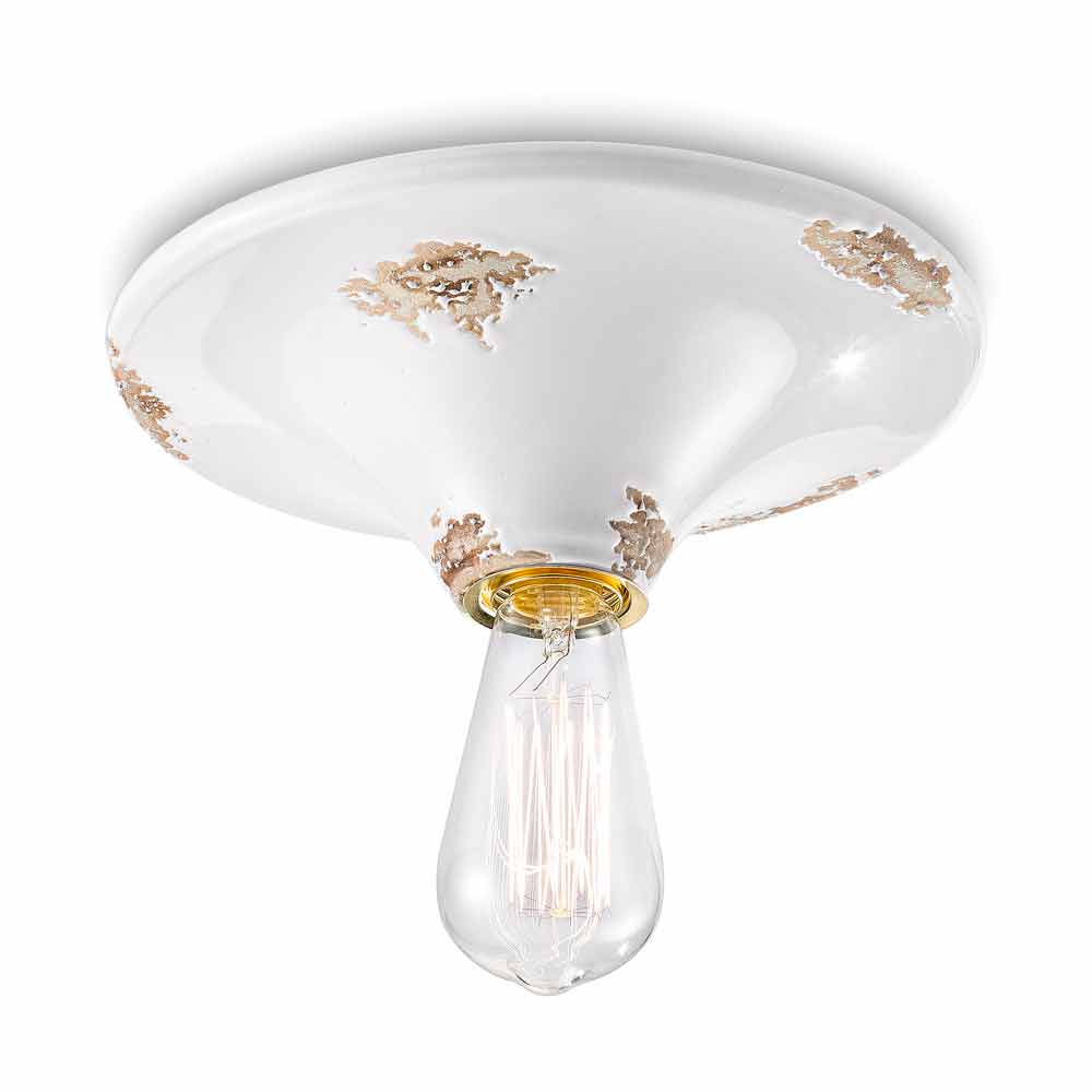 Foco de techo vintage en cerámica artesanal Erica Ferroluce Erica es una fantástica lámpara de techo, hecha a mano en cerámica por expertos artesanos en Italia. Erica es una lámpara de techo minimalista y funcional. La peculiaridad de esta lámpara radica en el tratamiento de su acabado exterior, decorado de tal forma que si el tiempo hubiera marcado su paso. La reproducción de la erosión del tiempo combinada con las superficies brillantes le dan ese valor extra a esta lámpara de techo. Ideal para ambientes con estilo urbano y sabor vintage. Erica se compone de un diseño esencial y elegante, que conserva la esencialidad del uso y tranquiliza con un delicado equilibrio entre formas y tonalidades. ¡Pequeños detalles para un gran efecto con sabor antiguo! Lámpara disponible en diferentes acabados. ¡Consulta la carta de colores e introduce el código del acabado que deseas en la casilla correspondiente!