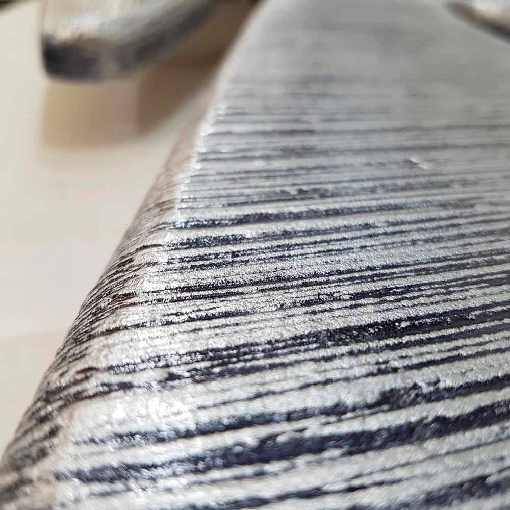 Este fantástico percha cuenta con un marco de MDF moldeado y pintado a mano de la hoja de plata en el material estampado y acabado brillante. Su estructura es una reminiscencia de imágenes tribales, enriquecidas por las perillas de cuatro cromo que dan brillo a toda la estructura.